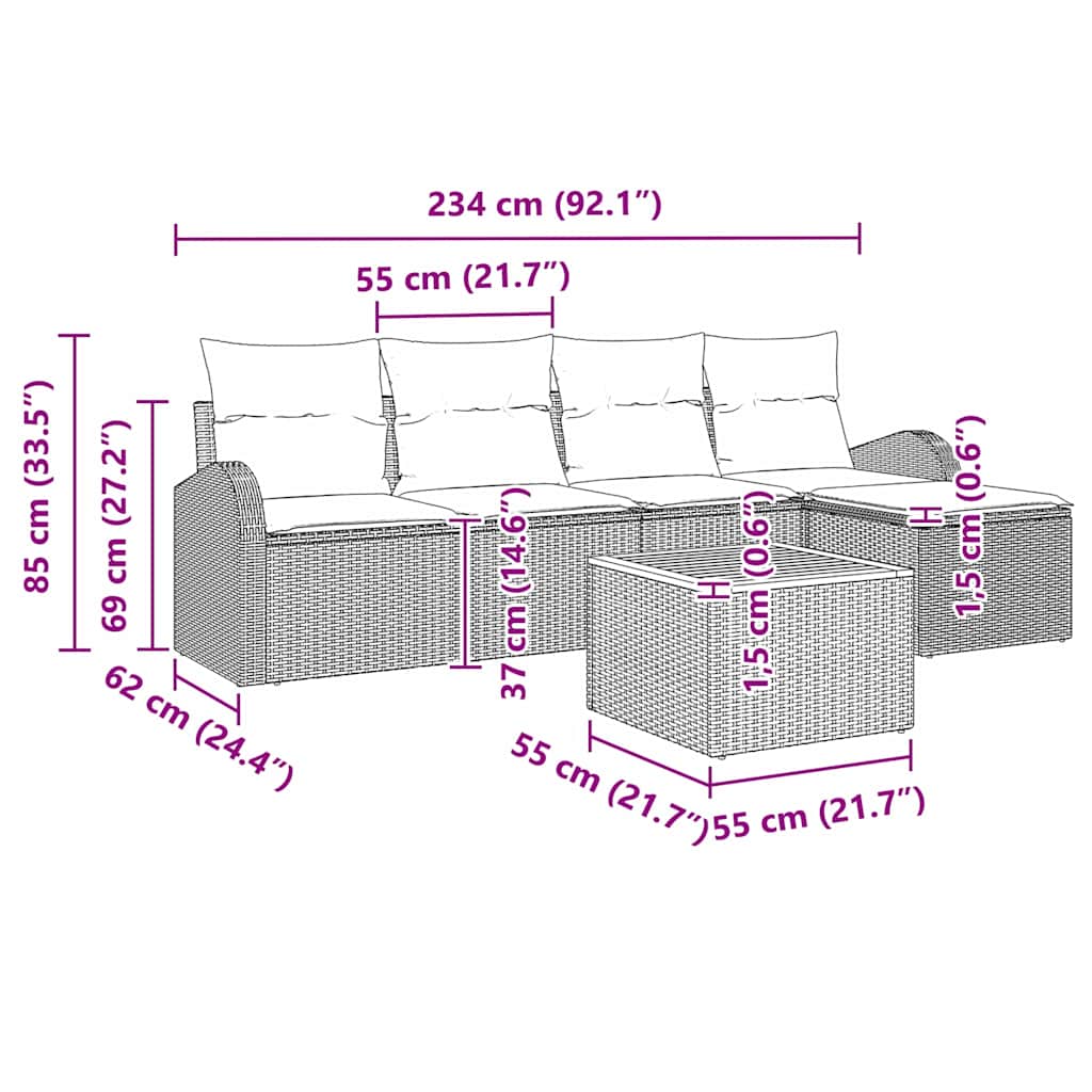 Dieses Garten Sofa Set ist eine großartige Wahl zum Entspannen im Freien. Mit einem modernen Look und solider Verarbeitung passt es perfekt auf jeden Balkon oder in jeden Garten. Der graue Poly-Rattan-Finish und die schicken grauen Kissen bringen Komfort und Stil zusammen, ideal für Treffen oder entspannte Momente im Freien. Robuste Bauweise: Hergestellt aus Poly-Rattan, ist dieses Set dafür gemacht, mit den Witterungsbedingungen klarzukommen und gleichzeitig ein stylisches Flair zu bieten. Der stabile pulverbeschichtete Stahlrahmen sorgt für Langlebigkeit, also perfekt für draußen. Bequeme Kissen: Jeder Sitz hat ein weiches graues Kissen, das Komfort bietet und Reißverschlüsse zur einfachen Reinigung hat. Verbringe endlose Stunden mit Entspannen mit Freunden. Geräumige Sitzgelegenheiten: Platz für bis zu fünf Personen, ideal für Familienessen, Sommer-BQ oder einfach zum Sonnenbaden. Dieses Set sorgt dafür, dass jeder gemütlich sitzen kann. Vielseitiger Einsatz: Ideal für Terrassen, Balkone oder Gärten, hilft dieses flexible Set, einen Chill-Bereich überall zu schaffen, perfekt für alles, von Nachmittags-Tee bis Abendveranstaltungen. Stylishes Aussehen: Die coole graue Farbgebung passt toll zu verschiedenen Deko-Stilen und macht es mehr als nur Möbel, sondern zu einem Designelement in deinem Außenbereich.