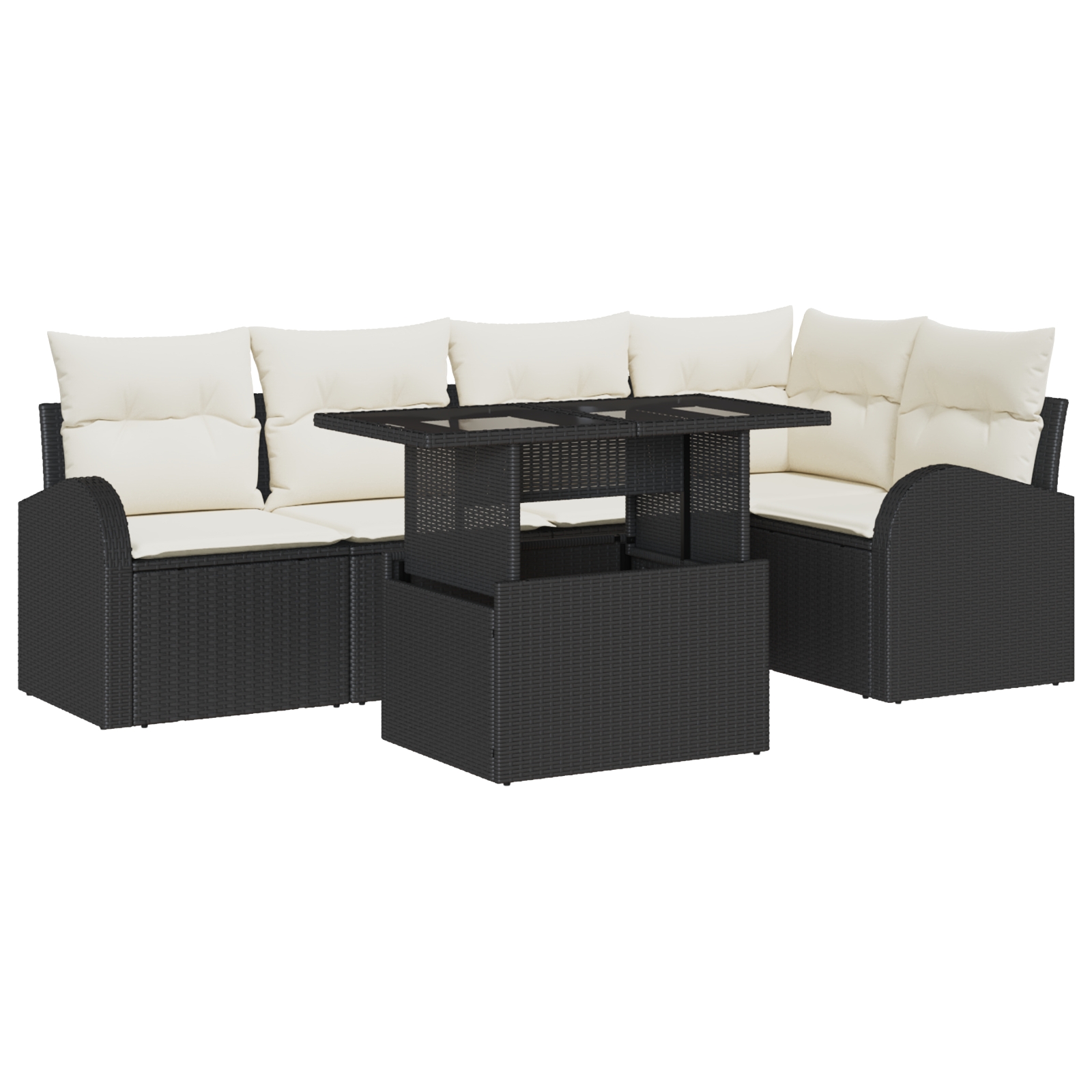 Dieses Garten Sofa Set kombiniert Stil und Praktikabilität. Es bietet genügend Platz zum Entspannen oder um mit Freunden abzuhängen. Die Kombination aus Schwarz und Weiß sowie das handgewebte Rattan verleihen ihm eine einladende Atmosphäre, perfekt für Balkone oder Patios. Dieses Set umfasst drei Teile – ein Ecksofa, einen Tisch und eine Bank – und ist die perfekte Wahl für Versammlungen. Das modulare Design erlaubt dir, es nach Belieben anzuordnen, um es in deinen Außenbereich zu integrieren. Wetterbeständige Materialien sorgen dafür, dass es bei verschiedenen Bedingungen gut aussieht. Mit verstellbaren Füßen bleibt dieses Sofa auf unterschiedlichen Oberflächen stabil, was Komfort und Sicherheit erhöht. Kissen sind für zusätzlichen Komfort enthalten, ideal für faule Nachmittage oder um Gäste zu unterhalten.