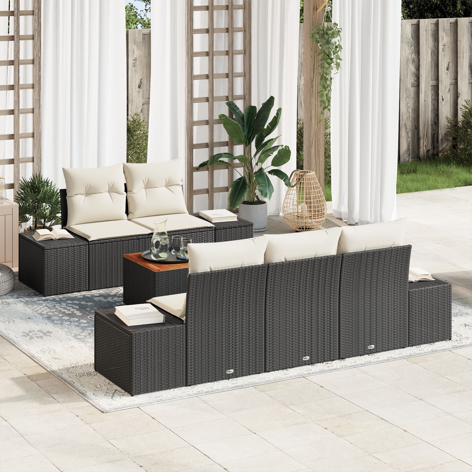 Dieses Garten-Sofa-Set verwandelt deinen Außenbereich in einen tollen Ort zum Entspannen und Zusammensitzen. Es ist flexibel designt, mit schwarzem Poly-Rattan und cremefarbenen Kissen, die einen Hauch von Eleganz bringen und es zu einer super Wahl für Balkone, Terrassen oder Gärten machen. Komfort an erster Stelle: Dieses Outdoor-Sofa-Set hat dicke Kissen aus leichtem Schaum, die sicherstellen, dass du und deine Freunde bequem sitzen, ideal für lange Aufenthalte im Freien. Modernes Design: Das stylische schwarze Rattan mit cremefarbenen Akzenten bringt eine frische Atmosphäre, die gut zu modernen und traditionellen Einrichtungsstilen passt. Funktionale Größe: Das Eckdesign bietet Platz für bis zu sechs Personen und ist ideal für Familienfeiern, Sommerpartys oder entspannte Abende mit Freunden. Robuste Materialien: Hergestellt aus robustem Rattan und Stad, ist dieses Set stark genug für alle Wetterbedingungen und hat eine schicke gewebte Textur. Einfach zu reinigen: Abnehmbare und waschbare Kissenbezüge machen es leicht, alles sauber zu halten, sodass du mehr Zeit damit verbringen kannst, deine Outdoor-Oase zu genießen.