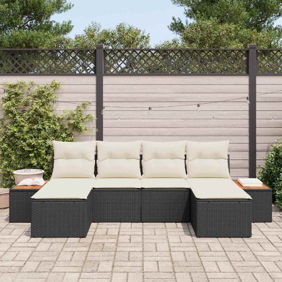 Dieses Garten-Sofa-Set verbindet Stil und Praktikabilität – ideal zum entspannten Chillen im Freien. Das moderne Design und die schicken Farben in Schwarz und Creme bringen eine tolle Stimmung, ob beim kleinen Treffen oder bei großen Feiern. Stylisch und zeitgenössisch: Die klaren Linien und das moderne Design machen dieses Garten-Sofa-Set zu einer super Ergänzung für Terrassen, Balkone oder Gärten. Die hübsche Farbgestaltung passt gut in viele unterschiedliche Umgebungen. Bequeme Kissen: Jeder Sitz hat abnehmbare, wetterfeste Kissen aus robustem Polyester, damit du bei langen Outdoor-Gesprächen bequem bleibst. Und die Pflege ist ein Kinderspiel! Vielseitiges Layout: Das modulare Design erlaubt es dir, die Sitze nach deinem Wunsch anzuordnen und sie deinem Stil und Bedarf anzupassen. Ideal für alles, von Partys bis entspannten Momenten. Integrierter Stauraum: Der Stauraum in den Sitzen und Fußhockern sorgt für einen aufgeräumten Außenbereich und macht es easy, wenn mal was weggeräumt werden muss. Dieses Feature erleichtert die Pflege enorm. Haltbare Materialien: Aus synthetischem Poly-Rattan mit einer matten Oberfläche gefertigt, ist dieses Sofa-Set perfekt für die Nutzung im Freien und sieht dabei stylish aus. Es ist darauf ausgelegt, lange zu halten, und ist eine smarte Wahl für dein Leben im Freien.