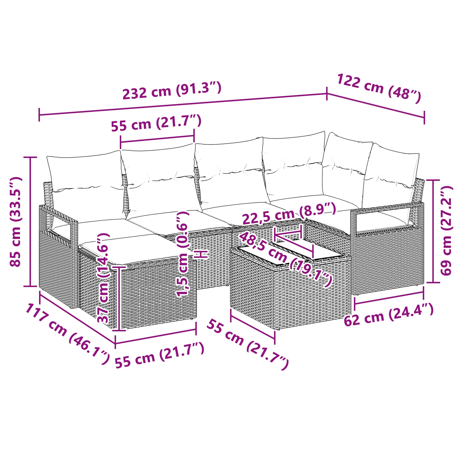 Das 6-teilige modulares Garten-Sofaset ist genau das, was du brauchst, um Stil und Flexibilität in deinem Außenbereich zu vereinen. Mit einem schicken Schwarz und Creme Farbschema sorgt es für eine einladende Atmosphäre, perfekt zum Entspannen mit Familie und Freunden. Das modulare Design ermöglicht es dir, es auf viele verschiedene Arten zu gestalten, wodurch das Sofaset super anpassbar für jeden Balkon oder Terrasse wird. Du kannst es leicht für Partys und Treffen umstellen, sodass es bequem bleibt und deinem Stil entspricht. Das wetterfeste Poly-Rattan ist robust genug, um den Elementen standzuhalten, sodass es über Jahre gut aussieht. Du kannst entspannt die Zeit im Freien genießen. Die großzügige Polsterung mit Schaumstoff sorgt für erstklassigen Komfort. Egal, ob beim Kaffeeklatsch oder beim Sonnenbaden, dieses Sofaset macht jeden Moment angenehm. Geräumig für bis zu 6 Personen, perfekt für gesellige Runden. Lade Freunde zu einem BBQ ein oder genieße einen gemütlichen Abend mit der Familie. Die handgewebte Verarbeitung und matte Oberfläche sorgen dafür, dass das modulare Sofaset nicht nur klasse aussieht, sondern auch lange hält. Du kannst es ohne Bedenken nutzen, denn es ist für den Außeneinsatz gemacht.