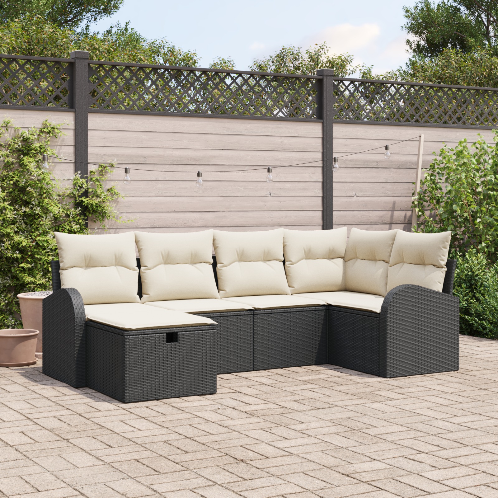 Dieses Garten-Sofaset bringt modernen Stil und praktische Punkte zusammen, um einen gemütlichen Platz im Freien zu schaffen. Es ist für bis zu vier Personen gedacht, und das modulare Design macht's leicht, die Anordnung anzupassen. So passt es perfekt auf deinen Balkon, Patio oder Garten. Modulare Vielseitigkeit: Du kannst das Outdoor-Sofaset einfach umstellen, was es perfekt macht, um Freunde zu empfangen oder auch einfach mal zu relaxen. Wetterfeste Materialien: Jedes Stück ist aus UV-beständigem Poly-Rattan, das dem Wetter standhält und das ganze Jahr über toll aussieht. Bequeme Kissen: Die dicken Kissen bieten extra Komfort und sind aus wetterfestem Stoff, der lange hält. Elegantes Design: Mit einem stylishen schwarzen Finish und cremefarbenen Kissen gibt dieses Set einen modernen Look, der zu jeder Außen-Dekoration passt und trotzdem gemütlich bleibt. Verstellbare Füße für Stabilität: Die verstellbaren Füße sorgen dafür, dass das Sofa auf unebenen Flächen stabil bleibt, was in deinem Entspannungsbereich für Komfort sorgt.