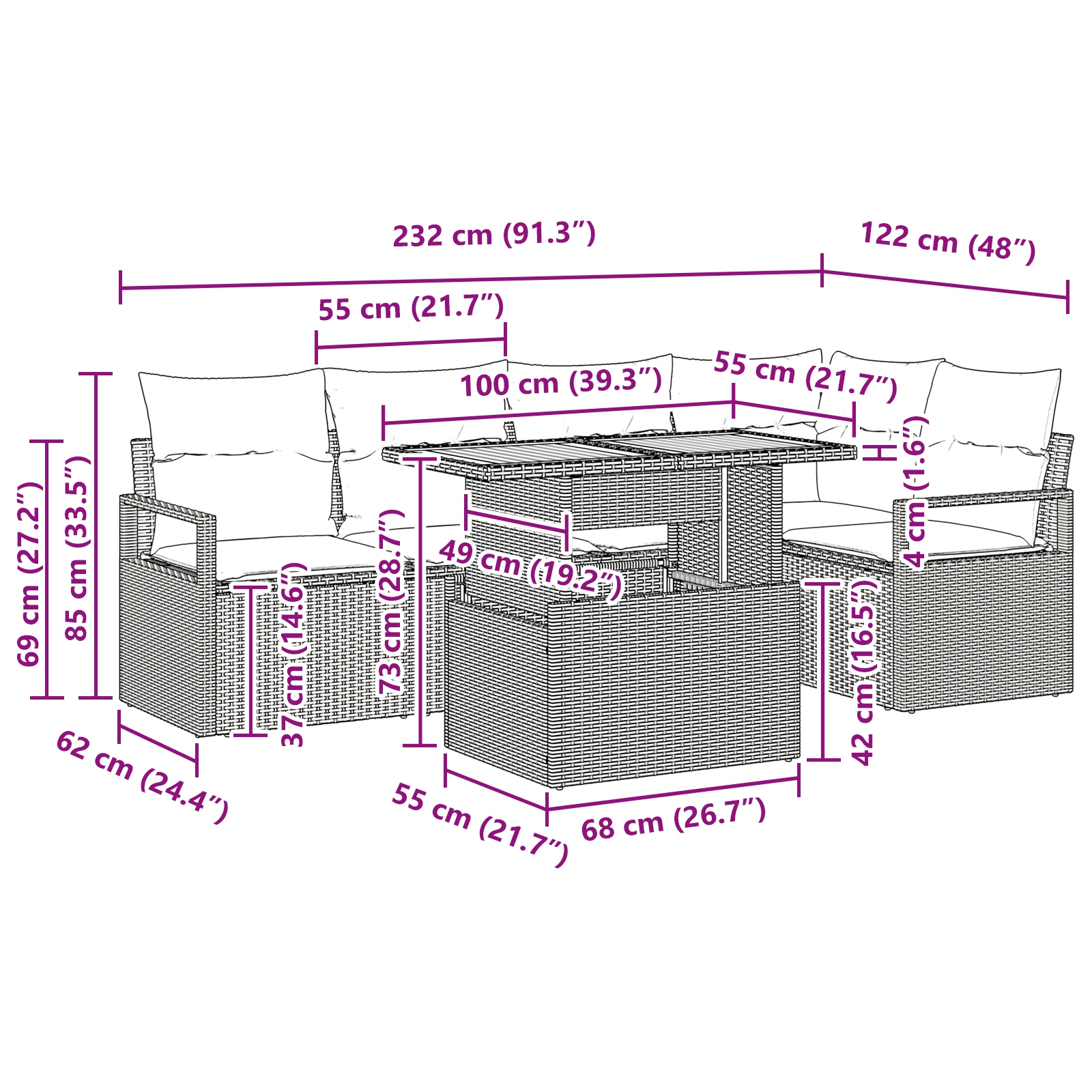 Dieses stylische Garten-Sofaset bringt modernen Stil und Flexibilität für Spaß im Freien. Mit handgewebten Details und bequemen Kissen schafft es die perfekte Atmosphäre für Treffen, Essen oder einfach zum Entspannen alleine. Stylisches Design: Das moderne Design mit strukturiertem Finish ist perfekt für Treffs mit Freunden und Familie. Verstellbare Funktionen: Mit verstellbaren Füßen bleibt dieses Sofaset stabil auf unterschiedlichen Oberflächen und sorgt für mehr Komfort draußen. Bequeme Kissen: Die wasserabweisenden Kissen bieten dir ein kuscheliges Erlebnis und lassen dich in deinem Lieblingsplatz im Freien entspannen. Robuste Materialien: Hergestellt aus handgewebtem Rattan und Polyesterstoff, hält dieses Set dem Wetter stand, ohne an Stil zu verlieren. Geräumige Sitzkapazität: Bis zu fünf Personen finden hier Platz, ideal für größere Zusammenkünfte oder Familienzeit im Freien.