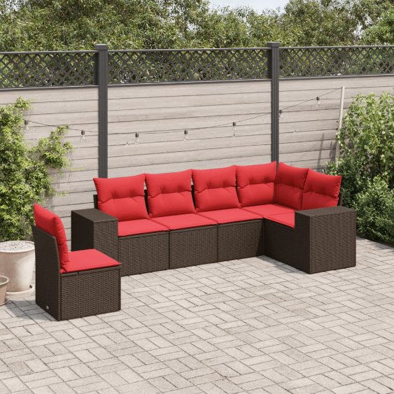 6-teiliges Gartensofa-Set mit Kissen, braun, Polyrattan