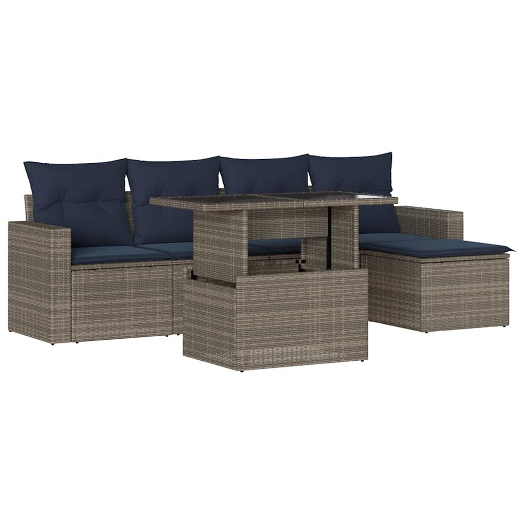 Dieses Gartensofa-Set ist die perfekte Ergänzung für Ihren Garten, Ihre Terrasse oder Ihren Innenhof und bietet einen komfortablen und einladenden Platz zum Plaudern mit Familie und Freunden oder einfach zum Entspannen und Genießen der Natur. Langlebiges Material: PE-Rattan, auch bekannt als Polyrattan, ist ein robustes, pflegeleichtes Kunststoffmaterial, das wie natürliches Rattan aussieht. Es ist leicht, einfach zu reinigen und wird aufgrund seiner Langlebigkeit und Wetterbeständigkeit häufig für Gartenmöbel verwendet.Verstellbare Tischplatte: Die Tischplatte kann angehoben werden, um den Tisch höher zu stellen, wodurch der Gartentisch von einem Couchtisch in einen Esstisch verwandelt wird. Es ist perfekt, um Gäste zu empfangen oder draußen zu essen.Bequemes Sitzerlebnis: Diese Gartenmöbel mit dick gepolsterten Kissen bieten ein bequemes Sitzerlebnis.Abnehmbarer und waschbarer Bezug: Diese Sitzkissen verfügen über abnehmbare Bezüge zum einfachen Waschen und Pflegen.Modulares Design: Dieses Gartenmöbelset hat ein modulares Design, wodurch es völlig flexibel und leicht zu bewegen ist, sodass Sie eine individuelle Gartenmöbelanordnung erstellen können. Gut zu wissen:Damit Ihre Gartenmöbel schön bleiben, empfehlen wir Ihnen, sie mit einer wasserdichten Abdeckung zu schützen.