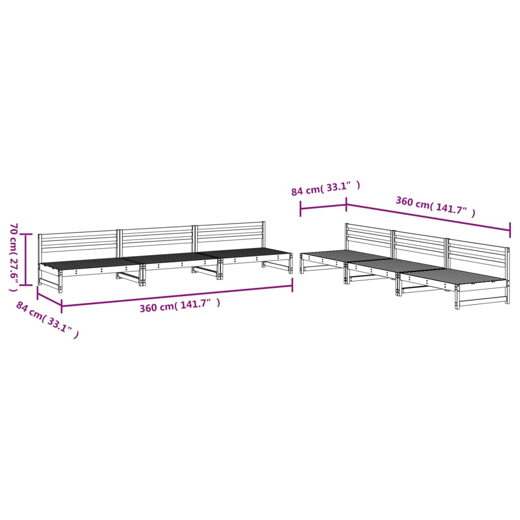- Abmessungen des Mittelsofas: 120 x 84 x 70 cm (L x B x H)
