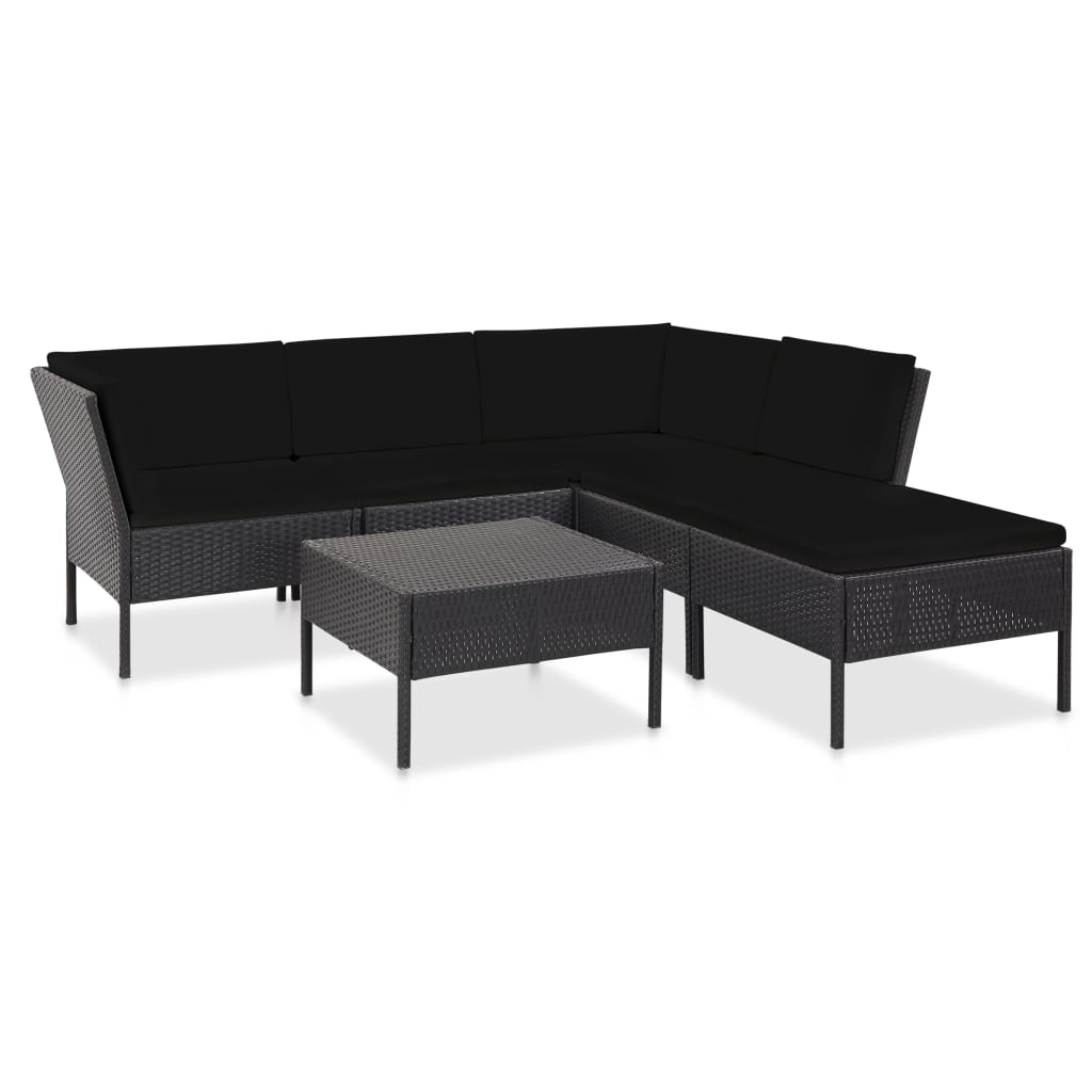 Startseite » Möbel » Gartenmöbel » Gartenmöbel-Sets » 6-tlg. Garten-Lounge-Set mit Auflagen Poly Rattan Schwarz