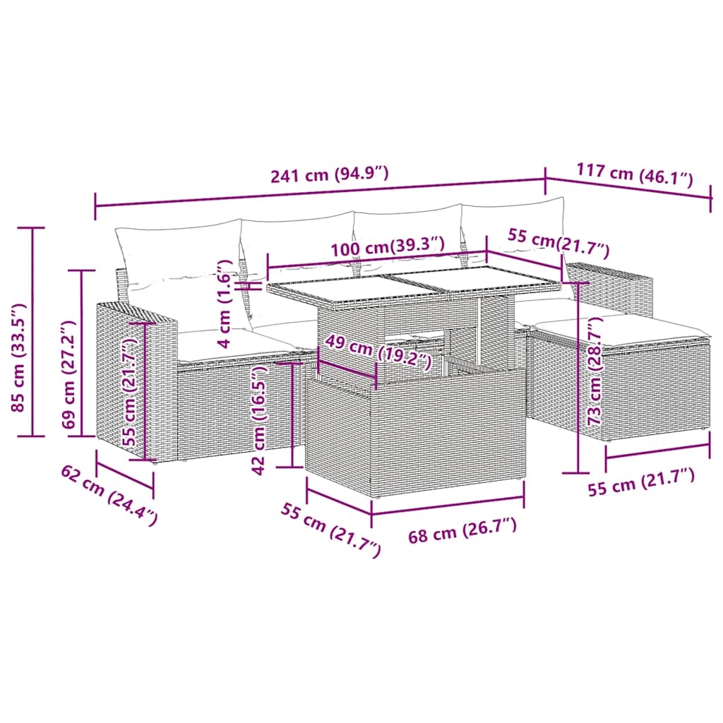 Diese Garten-Sofagarnitur ist die perfekte Ergänzung zu deinem Garten, deiner Terrasse oder deinem Innenhof. Sie bietet einen bequemen und einladenden Platz, um mit Familie und Freunden zu plaudern oder dich einfach nur zu entspannen und das Leben im Freien zu genießen.Langlebiges Material: PE-Rattan, auch als Poly Rattan bekannt, ist ein robustes, pflegeleichtes synthetisches Material, das die Optik von natürlichem Rattan aufweist. Es kennzeichnet sich durch ein geringes Eigengewicht und lässt sich einfach reinigen. Aufgrund seiner Haltbarkeit und Witterungsbeständigkeit wird es häufig bei der Herstellung von Gartenmöbeln verwendet.Stauraum mit wasserfestem Beutel: Jedes Gartensofa verfügt über ein Staufach unter der Sitzfläche, das mit einem wasserfesten Beutel zur Aufbewahrung von Kissen, Spielzeug und anderen Gegenständen versehen ist. Die Kissen sind mit Bezügen versehen und lassen sich mit Klettverschlüssen fest und sicher an den Sofas befestigen.Abnehmbarer und waschbarer Bezug: Diese Sitzkissen verfügen über abnehmbare Bezüge für einfaches Waschen und Pflegen.Modulares Design: Dank des modularen Designs lassen sich die Gartenmöbel völlig flexibel und einfach umstellen, um deinen Außenbereich ganz individuell zu gestalten.Gut zu wissen:Wir empfehlen dir, deine Gartenmöbel mit einer wasserdichten Hülle zu schützen, um lange Zeit eine ansprechende Optik aufzuweisen.