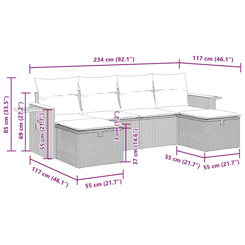 6-tlg. Garten-Sofagarnitur mit Kissen Grau Poly Rattan