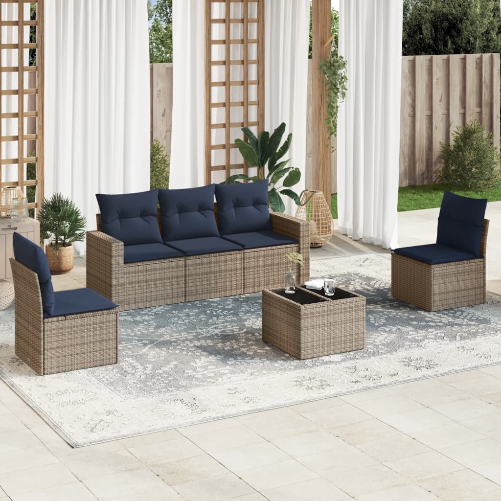 Diese Garten-Sofagarnitur ist die perfekte Ergänzung zu deinem Garten, deiner Terrasse oder deinem Innenhof. Sie bietet einen bequemen und einladenden Platz, um mit Familie und Freunden zu plaudern oder dich einfach nur zu entspannen und das Leben im Freien zu genießen. Langlebiges Material: PE-Rattan, auch als Poly Rattan bekannt, ist ein robustes, pflegeleichtes synthetisches Material, das die Optik von natürlichem Rattan aufweist. Es kennzeichnet sich durch ein geringes Eigengewicht und lässt sich einfach reinigen. Aufgrund seiner Haltbarkeit und Witterungsbeständigkeit wird es häufig bei der Herstellung von Gartenmöbeln verwendet.Stauraum mit wasserfestem Beutel: Jedes Gartensofa verfügt über ein Staufach unter der Sitzfläche, das mit einem wasserfesten Beutel zur Aufbewahrung von Kissen, Spielzeug und anderen Gegenständen versehen ist. Die Kissen sind mit Bezügen versehen und lassen sich mit Klettverschlüssen fest und sicher an den Sofas befestigen.Tischplatte aus Glas: Die Tischplatte des Gartentisches besteht aus starkem und langlebigem Hartglas, sodass sie leicht mit einem feuchten Tuch gereinigt werden kann und deinem Außenbereich einen Hauch von Eleganz verleiht.Abnehmbarer und waschbarer Bezug: Diese Sitzkissen verfügen über abnehmbare Bezüge für einfaches Waschen und Pflegen.Modulares Design: Dank des modularen Designs lassen sich die Gartenmöbel völlig flexibel und einfach umstellen, um deinen Außenbereich ganz individuell zu gestalten. Gut zu wissen:Wir empfehlen dir, deine Gartenmöbel mit einer wasserdichten Hülle zu schützen, um lange Zeit eine ansprechende Optik aufzuweisen.
