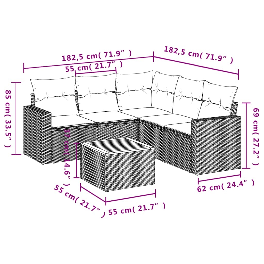 6-tlg. Garten-Sofagarnitur mit Kissen Grau Poly Rattan