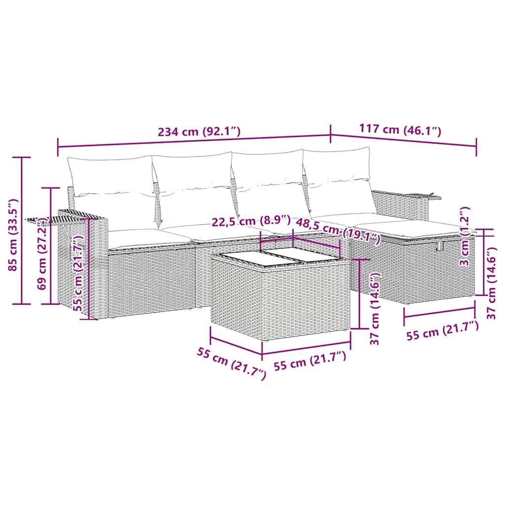 Diese Garten-Sofagarnitur ist die perfekte Ergänzung zu deinem Garten, deiner Terrasse oder deinem Innenhof. Sie bietet einen bequemen und einladenden Platz, um mit Familie und Freunden zu plaudern oder dich einfach nur zu entspannen und das Leben im Freien zu genießen. Langlebiges Material: PE-Rattan, auch als Poly Rattan bekannt, ist ein robustes, pflegeleichtes synthetisches Material, das die Optik von natürlichem Rattan aufweist. Es kennzeichnet sich durch ein geringes Eigengewicht und lässt sich einfach reinigen. Aufgrund seiner Haltbarkeit und Witterungsbeständigkeit wird es häufig bei der Herstellung von Gartenmöbeln verwendet.Stauraum mit wasserfestem Beutel: Jedes Gartensofa verfügt über ein Staufach unter der Sitzfläche, das mit einem wasserfesten Beutel zur Aufbewahrung von Kissen, Spielzeug und anderen Gegenständen versehen ist. Die Kissen sind mit Bezügen versehen und lassen sich mit Klettverschlüssen fest und sicher am Sofa befestigen.Vielseitiger Fußhocker: Der Hocker ist vielseitig einsetzbar und dient als bequeme Fußstütze beim Entspannen auf dem Sofa oder als zusätzlicher Sitzplatz in deinem Garten.Abnehmbarer und waschbarer Bezug: Diese Sitzkissen verfügen über abnehmbare Bezüge für einfaches Waschen und Pflegen.Robustes und stabiles Gestell: Der pulverbeschichtete Stahlgestell ist stark, stabil, langlebig sowie korrosions- und wetterbeständig, um eine lang anhaltende Leistung zu gewährleisten. Gut zu wissen:Wir empfehlen dir, deine Gartenmöbel mit einer wasserdichten Hülle zu schützen, um lange Zeit eine ansprechende Optik aufzuweisen.