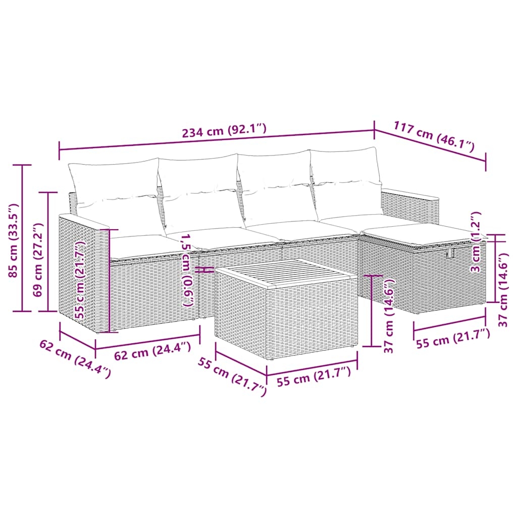 Diese Garten-Sofagarnitur ist die perfekte Ergänzung zu deinem Garten, deiner Terrasse oder deinem Innenhof. Sie bietet einen bequemen und einladenden Platz, um mit Familie und Freunden zu plaudern oder dich einfach nur zu entspannen und das Leben im Freien zu genießen. Langlebiges Material: PE-Rattan, auch als Poly Rattan bekannt, ist ein robustes, pflegeleichtes synthetisches Material, das die Optik von natürlichem Rattan aufweist. Es kennzeichnet sich durch ein geringes Eigengewicht und lässt sich einfach reinigen. Aufgrund seiner Haltbarkeit und Witterungsbeständigkeit wird es häufig bei der Herstellung von Gartenmöbeln verwendet.Stauraum mit wasserfestem Beutel: Jedes Gartensofa verfügt über ein Staufach unter der Sitzfläche, das mit einem wasserfesten Beutel zur Aufbewahrung von Kissen, Spielzeug und anderen Gegenständen versehen ist. Die Kissen sind mit Bezügen versehen und lassen sich mit Klettverschlüssen fest und sicher am Sofa befestigen.Vielseitiger Fußhocker: Der Hocker ist vielseitig einsetzbar und dient als bequeme Fußstütze beim Entspannen auf dem Sofa oder als zusätzlicher Sitzplatz in deinem Garten.Abnehmbarer und waschbarer Bezug: Diese Sitzkissen verfügen über abnehmbare Bezüge für einfaches Waschen und Pflegen.Robustes und stabiles Gestell: Der pulverbeschichtete Stahlgestell ist stark, stabil, langlebig sowie korrosions- und wetterbeständig, um eine lang anhaltende Leistung zu gewährleisten. Gut zu wissen:Wir empfehlen dir, deine Gartenmöbel mit einer wasserdichten Hülle zu schützen, um lange Zeit eine ansprechende Optik aufzuweisen.