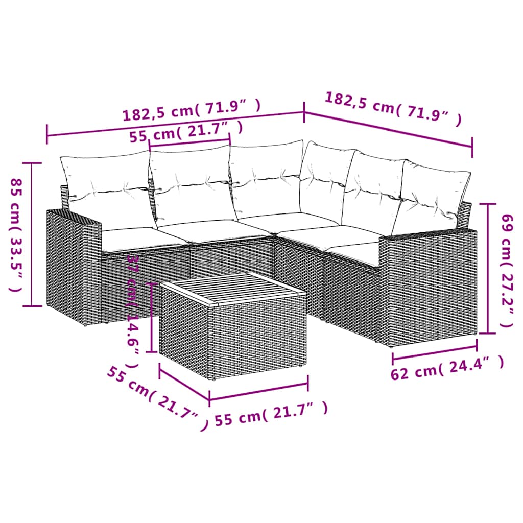6-tlg. Garten-Sofagarnitur mit Kissen Schwarz Poly Rattan