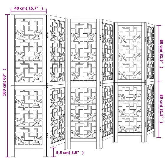 Verleihe deinem Wohnraum eine auffällige dekorative Note mit diesem bezaubernden Raumteiler. Langlebig und leicht zu reinigen: Der Sichtschutz ist aus Paulownia-Massivholz und Holzwerkstoff gefertigt, wodurch er pflegeleicht und strapazierfähig ist. Robuster Rahmen: Der Rahmen aus massivem Paulownia-Holz sorgt für Robustheit und Stabilität. Paulownia-Massivholz ist ein wunderschönes Naturmaterial. Paulowniaholz ist widerstandsfähig gegen Schädlingsbefall und Verrottung. Flexibel und einfach faltbar: Die Paravent-Teile sind jeweils durch 3 Metallscharniere miteinander verbunden. Die oberen und unteren Paneele dieser spanischen Wand sind durch verborgene 2-in-1-Scharniere verbunden. Der Raumtrenner kann also leicht bis zu einem gewissen Grad zusammengeklappt werden; dadurch spart er bei Nichtgebrauch Platz. Vielseitig einsetzbar: Die Trennwand eignet sich hervorragend zur Schaffung von Privatsphäre im Schlafzimmer, Wohnzimmer, Büro und anderen Räumen. Du kannst das Paravent auch vor ein Fenster stellen, um intensives Sonnenlicht abzuschirmen. Achtung:Nur für den Innenbereich!