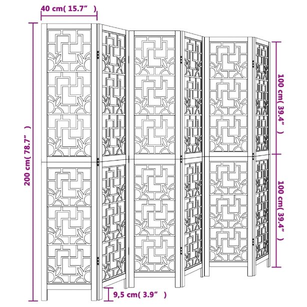 Verleihe deinem Wohnraum eine auffällige dekorative Note mit diesem bezaubernden Raumteiler. Langlebig und leicht zu reinigen: Der Sichtschutz ist aus Paulownia-Massivholz und Holzwerkstoff gefertigt, wodurch er pflegeleicht und strapazierfähig ist. Robuster Rahmen: Der Rahmen aus massivem Paulownia-Holz sorgt für Robustheit und Stabilität. Paulownia-Massivholz ist ein wunderschönes Naturmaterial. Paulowniaholz ist widerstandsfähig gegen Schädlingsbefall und Verrottung. Flexibel und einfach faltbar: Die Paravent-Teile sind jeweils durch 3 Metallscharniere miteinander verbunden. Die oberen und unteren Paneele dieser spanischen Wand sind durch verborgene 2-in-1-Scharniere verbunden. Der Raumtrenner kann also leicht bis zu einem gewissen Grad zusammengeklappt werden; dadurch spart er bei Nichtgebrauch Platz. Vielseitig einsetzbar: Die Trennwand eignet sich hervorragend zur Schaffung von Privatsphäre im Schlafzimmer, Wohnzimmer, Büro und anderen Räumen. Du kannst das Paravent auch vor ein Fenster stellen, um intensives Sonnenlicht abzuschirmen. Achtung:Nur für den Innenbereich!