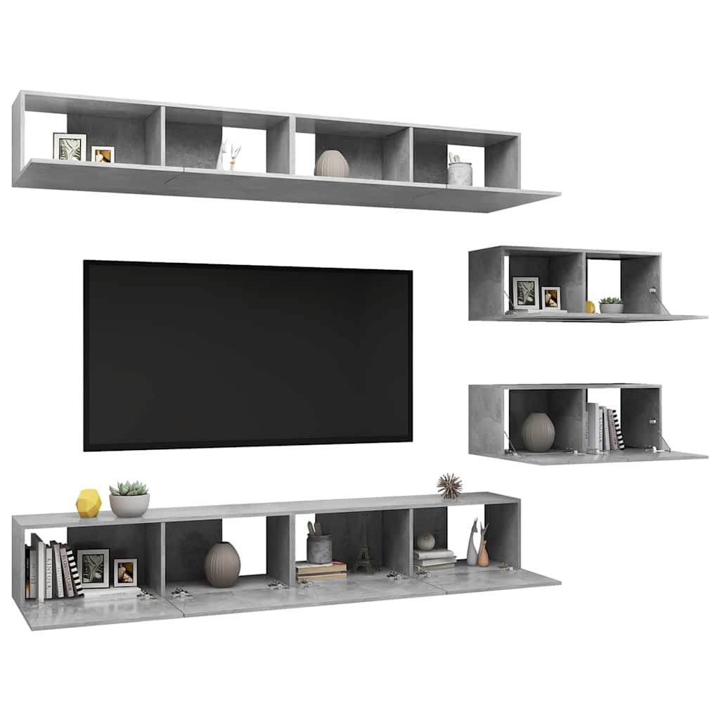 6-tlg. TV-Schrank-Set Betongrau Holzwerkstoff