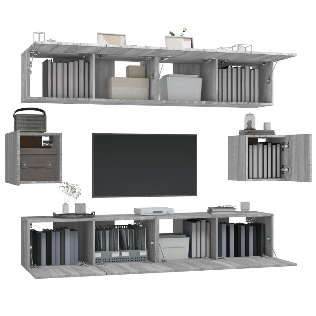 Dieses klassische TV-Schrank-Set wird mit seinem trendigen und dennoch praktischen Design zum Mittelpunkt deines Wohnzimmers. Robustes Material: Holzwerkstoff ist ein Material hoher Qualität mit glatter Oberfläche, das sich durch Festigkeit, Stabilität und Feuchtigkeitsbeständigkeit auszeichnet. Aus Holzwerkstoff gefertigt, lässt sich dieser TV-Schrank einfach reinigen.Viel Stauraum: Diese TV-Schränke bieten viel Stauraum, um all deine Zeitschriften, DVDs und andere Gegenstände gut organisiert aufzubewahren.Wandmontage: Der Medienschrank nimmt keine Bodenfläche ein. Er lässt sich einfach an der Wand befestigen.Praktische Türen: Schütze deine wichtigsten Sachen vor Staub, indem du sie hinter der Tür in dieser Medieneinheit verstaust. Hinweis:Schrauben und Dübel für die Wandbefestigung sind nicht enthalten. Suchen und verwenden Sie die für Ihre Wände geeigneten Schrauben und Dübel. Wenn Sie unsicher sind, suchen Sie professionelle Hilfe. Lesen und befolgen Sie jeden Schritt der Anleitung sorgfältig.Jedes Produkt wird mit einer Montageanleitung in der Verpackung für eine einfache Montage geliefert.