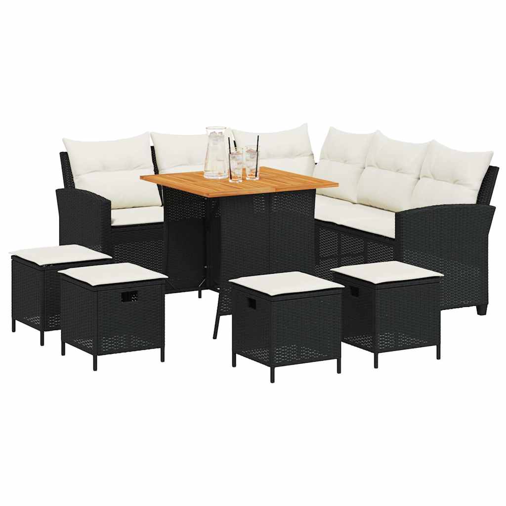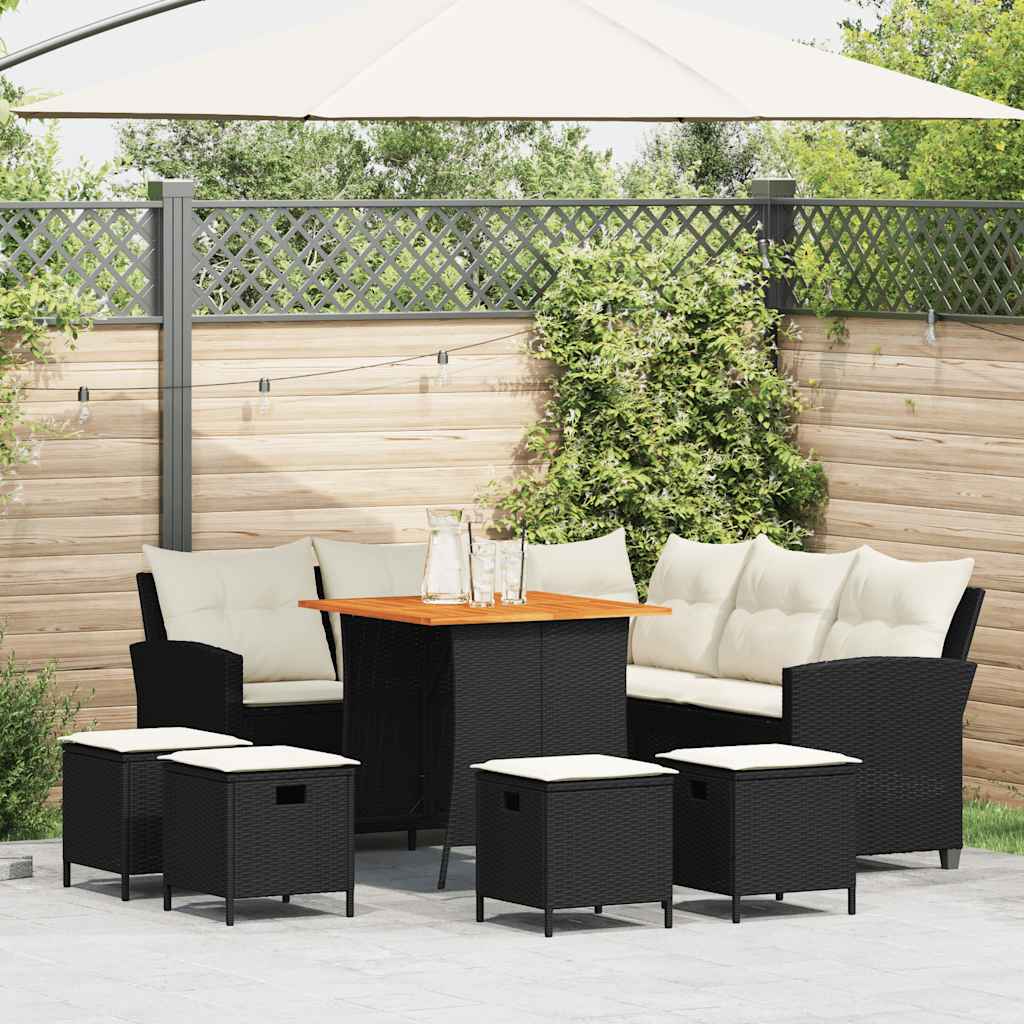 - Material: PE-Rattan, pulverbeschichteter Stahl, massives Akazienholz mit Ölfinish