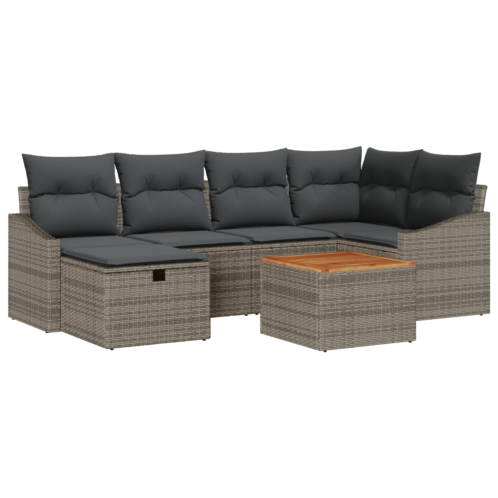 - Lieferumfang: 2 x Mittelsitz mit Stauraum, 1 x Ecksofa mit Stauraum, 2 x Armsofa mit Stauraum, 1 x Hocker mit Stauraum, 1 x Gartentisch