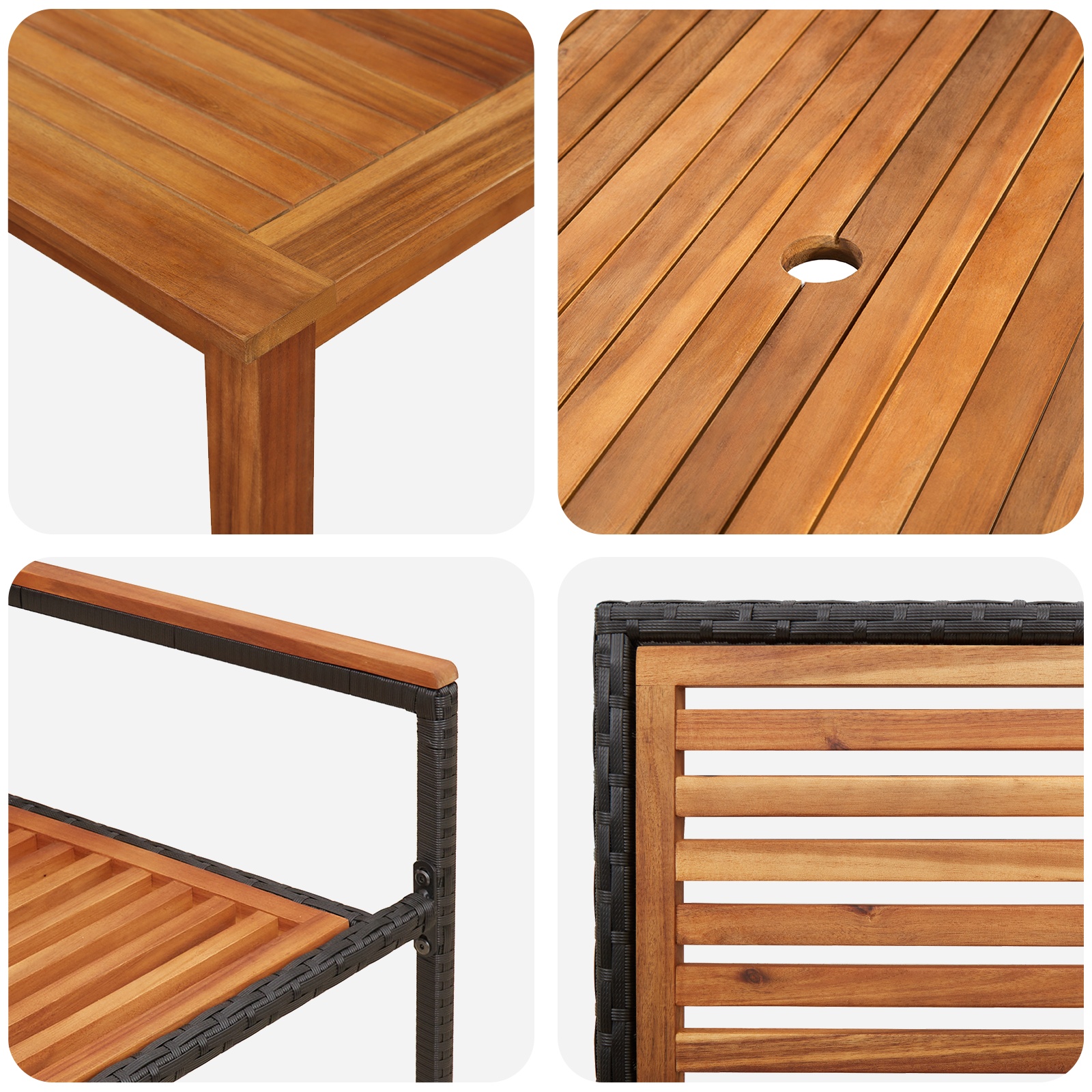 Dieses geräumige Garten-Esszimmer verbindet Stil mit Funktionalität und ist eine tolle Wahl, um dein Outdoor-Essen aufzupeppen. Es besteht aus einem großen rechteckigen Tisch aus Naturholz und sechs stabilen stapelbaren Stühlen, die deinem Balkon, Patio oder Garten einen modernen Touch geben. Geräumige Sitzgelegenheit: Bietet Platz für bis zu sechs Personen, perfekt für Familientreffen. Bequemes Design: Stühle haben glatte Sitzflächen aus Naturholz, optimal für längere Mahlzeiten. Einfach Pflege: Materialien machen die Reinigung kinderleicht, sodass dein Set immer gut aussieht. Leichtes Gewicht: Einfach, dein Esszimmer-Set zu bewegen und das Beste aus deinem Außenbereich zu machen. Robuste Bauweise: Für draußen gemacht mit UV-beständigen Materialien, die Sonnenschäden abhalten.
