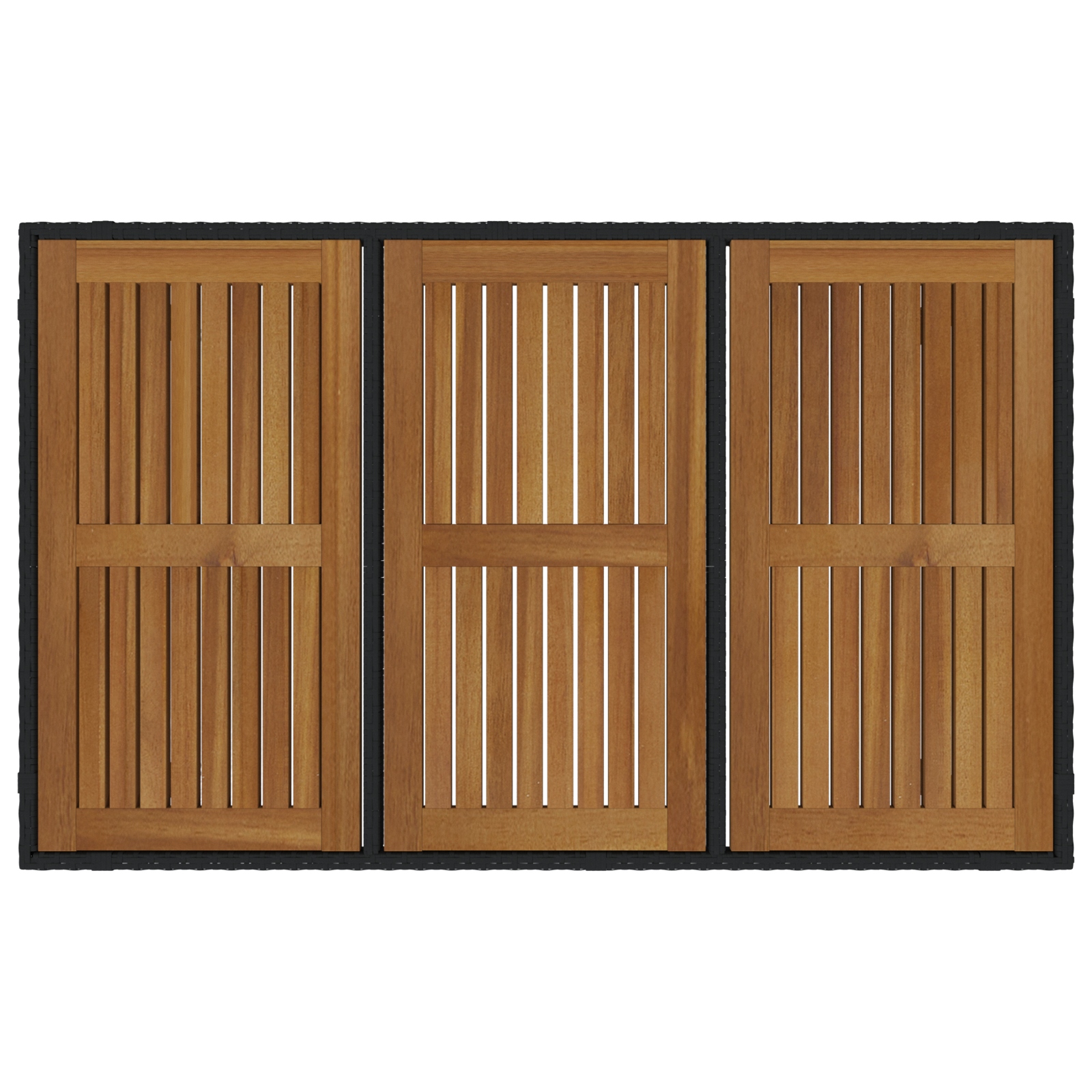 Diese schicke Garten Essgruppe kommt mit einem großzügigen Tisch und sechs stilvollen Stühlen. Das moderne Design verbindet ein elegantes schwarzes Stahlgestell mit natürlichen Holzdetails. Perfekt für große Außenbereiche wie Gärten oder Terrassen, ist dieses Set ideal für Mahlzeiten und gesellige Abende mit Freunden. Große Sitzkapazität: Dieses 7-teilige Set bietet Platz für bis zu sechs Gäste, sodass jeder gemeinsam Essen genießen kann. Haltbare Materialien: Hergestellt aus UV-beständigen Materialien, kann dieses Set dem Wetter trotzen und behält dabei sein tolles Aussehen. Modern und stilvoll: Die Kombination aus schwarzem Stahl und warmen Holz schafft eine trendige Atmosphäre, die zu jedem Außenbereich passt. Bequeme Sitzmöglichkeiten: Jeder Stuhl hat ein quadratisches Armlehnen-Design, das zusätzlichen Komfort bei langen Mahlzeiten oder Gesprächen bietet. Einfach zu reinigen: Die Oberflächen lassen sich einfach abwischen, was die Pflege zum Kinderspiel macht.