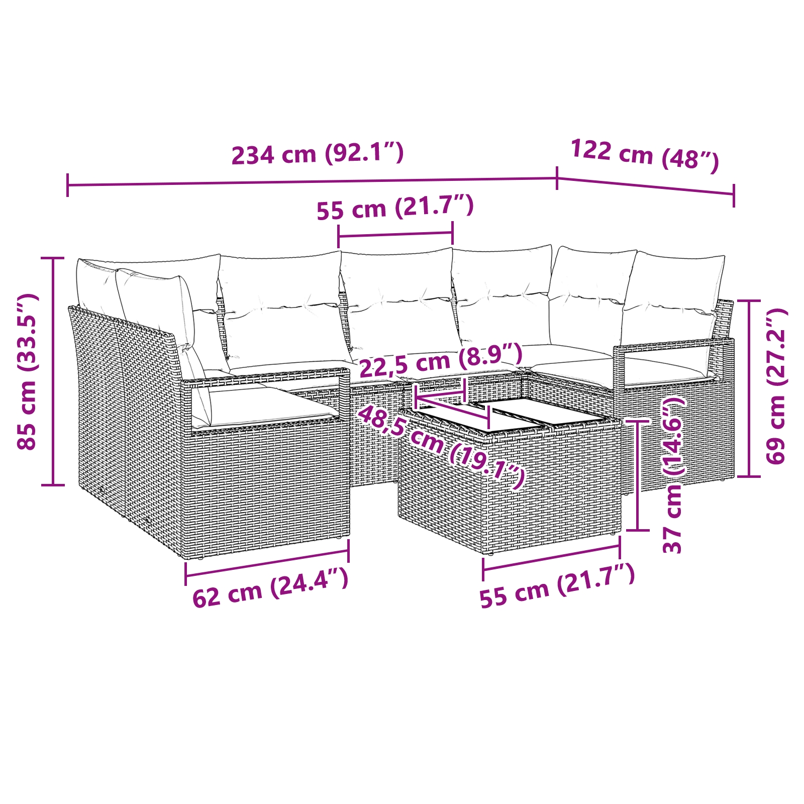 Dieses Garten-Sofa-Set kombiniert modernen Stil mit Praktikabilität und ist eine tolle Ergänzung für jeden Außenbereich. Mit bequemen Kissen und robustem Poly-Rattan sieht es schick aus und bietet gleichzeitig hervorragende Sitzgelegenheiten zum Entspannen oder Essen im Freien. Vielseitige Konfiguration: Das modulare Design erlaubt dir, es nach deinem Geschmack zu gestalten, perfekt für gemütliche Zusammenkünfte oder größere Feiern, angepasst an deinen Raum. Wetterbeständig: Aus robustem Poly-Rattan gefertigt, hält es den Außenbedingungen stand und sieht dabei schick aus, sodass es jahrelang in deinem Garten bleibt. Komfort zuerst: Weiche, abnehmbare Kissen machen es stundenlang bequem zum Entspannen an sonnigen Nachmittagen mit Familie und Freunden. Einfache Pflege: Die Kissen lassen sich für eine schnelle Reinigung abzippen, und die Rattan-Oberfläche ist leicht abzuwischen, was die Wartung super einfach macht. Geräumige Sitzgelegenheiten: Bietet Platz für bis zu fünf Personen, ideal für Feiern und genug Raum für Getränke, Snacks und tolle Gespräche.