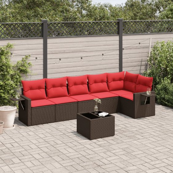 7-teiliges Gartensofa-Set mit Kissen, braun, Polyrattan