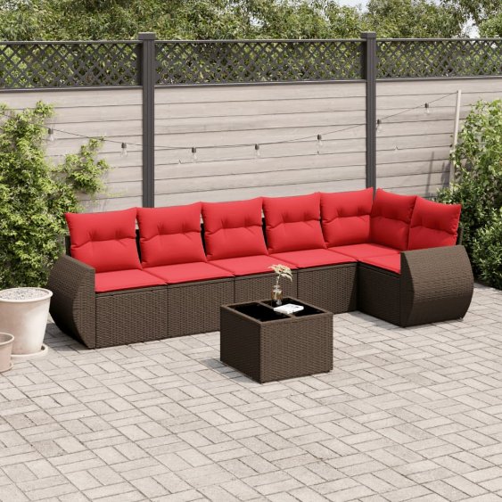 7-teiliges Gartensofa-Set mit Kissen, braun, Polyrattan