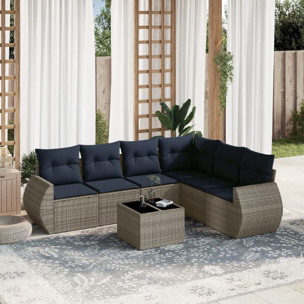 7-teiliges Gartensofa-Set mit Kissen, grau, Polyrattan