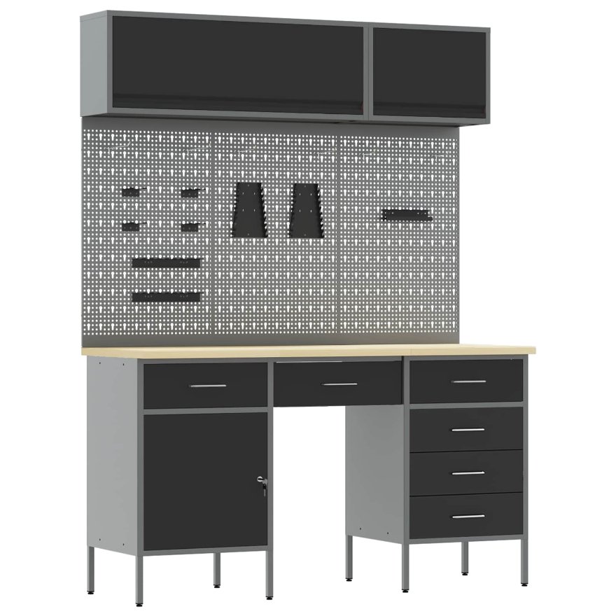 Dieser Industrie-Stil Arbeitsschrank verbindet Funktionalität mit Langlebigkeit – ideal für alle, die einen praktischen Arbeitsplatz suchen. Er ist aus robustem Stahl und Holzwerkstoff gemacht, sieht gut aus und passt super in jede Werkstatt, Garage oder Hobbyraum. Toller Stauraum: 12 Fächer für Werkzeuge, Zubehör und Geräte, um deinen Arbeitsplatz ordentlich zu halten. Verstellbare Füße: Höhenverstellbare Füße helfen dir, den Schrank auf unebenen Böden stabil zu machen. Robuste Materialien: Hergestellt aus strapazierfähigem Stahl und Holzwerkstoff, die für Langlebigkeit sorgen. Einfache Nutzung mit Kugellager-Schienen: Die Kugellager-Schienen gewährleisten einen reibungslosen Zugang zu den Schubladen. Vielseitiges Design: Elegantes Schwarz und Grau passen zu industriellen Stilen – perfekt für Werkstätten, Garagen und kreative Studios.