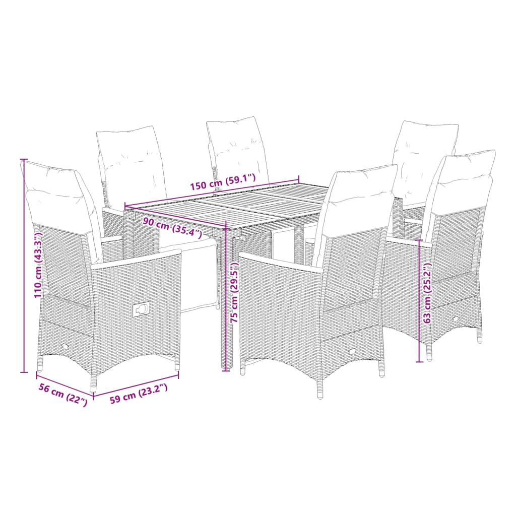- Material: PE-Rattan, pulverbeschichteter Stahl, massives Akazienholz mit Ölfinish