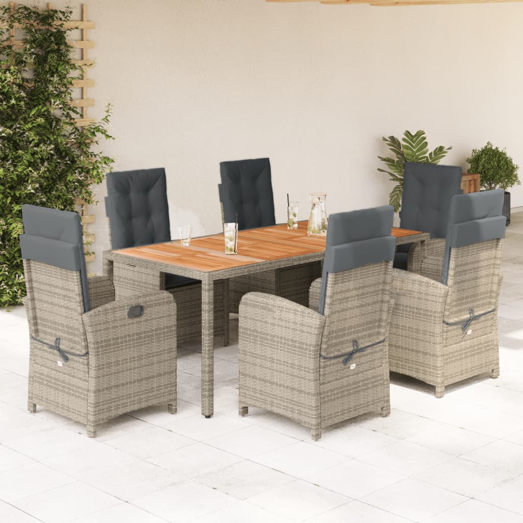 - Material: PE-Rattan, pulverbeschichteter Stahl, massives Akazienholz mit Ölfinish
