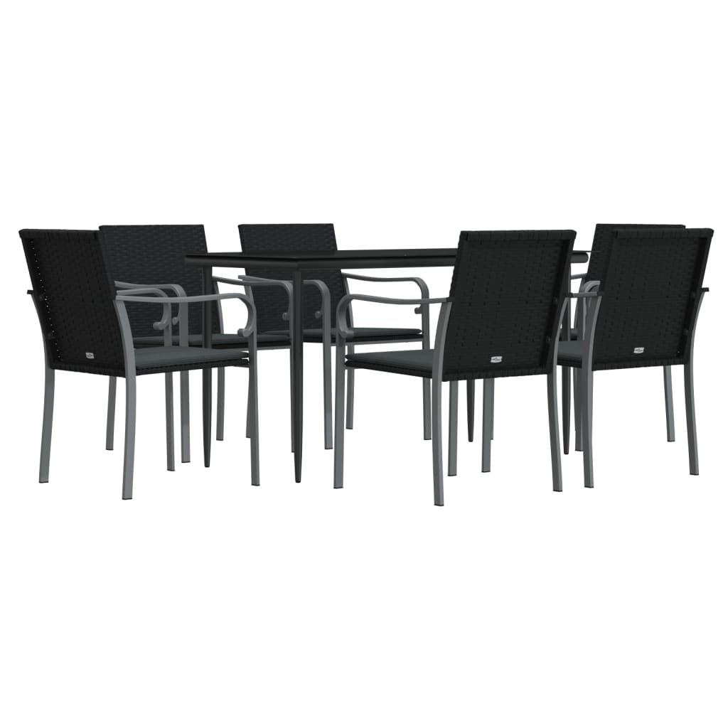 7-tlg. Garten-Essgruppe mit Kissen Poly Rattan und Stahl