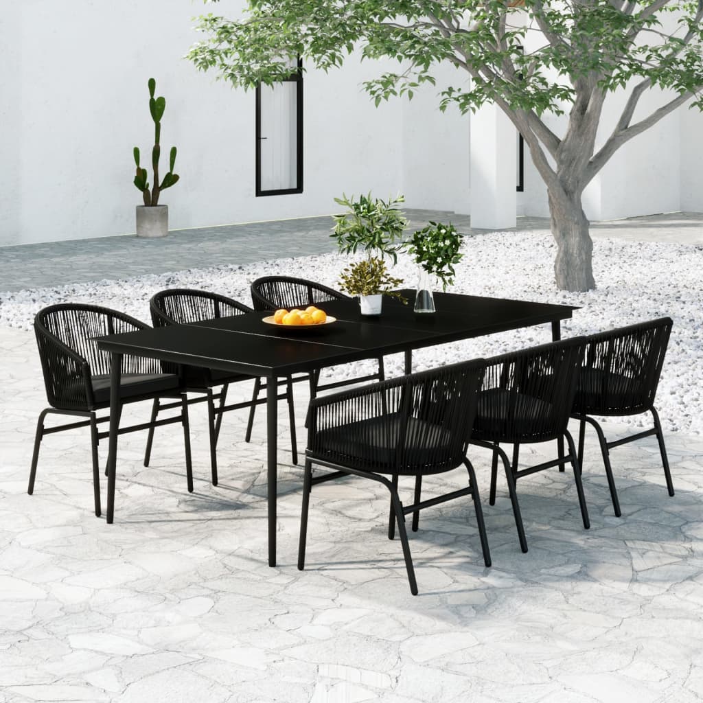 Schaffen Sie mit dieser Garten-Essgruppe eine überzeugende und zusammenhängende Ästhetik in Ihrem Außenbereich! Diese Garten-Essgruppe besteht aus einem pulverbeschichteten Stahlrahmen, der für Robustheit und Stabilität beim täglichen Gebrauch im Freien sorgt. Die glatte Glastischplatte lässt sich leicht mit einem feuchten Tuch reinigen und eignet sich perfekt zum Abstellen von Speisen, Getränken und anderen Dekorationsgegenständen. Die Terrassenstühle sind aus PVC-Rattan gefertigt, wodurch sie langlebig und widerstandsfähig gegen schlechtes Wetter und UV-Strahlen sind. Außerdem ist jeder Sitz mit einem abnehmbaren, dick gepolsterten Kissen für zusätzlichen Komfort beim Relaxen ausgestattet. Hinweis: Um die Lebensdauer deiner Gartenmöbel zu verlängern, empfehlen wir dir, sie mit einer wasserdichten Abdeckung zu schützen.