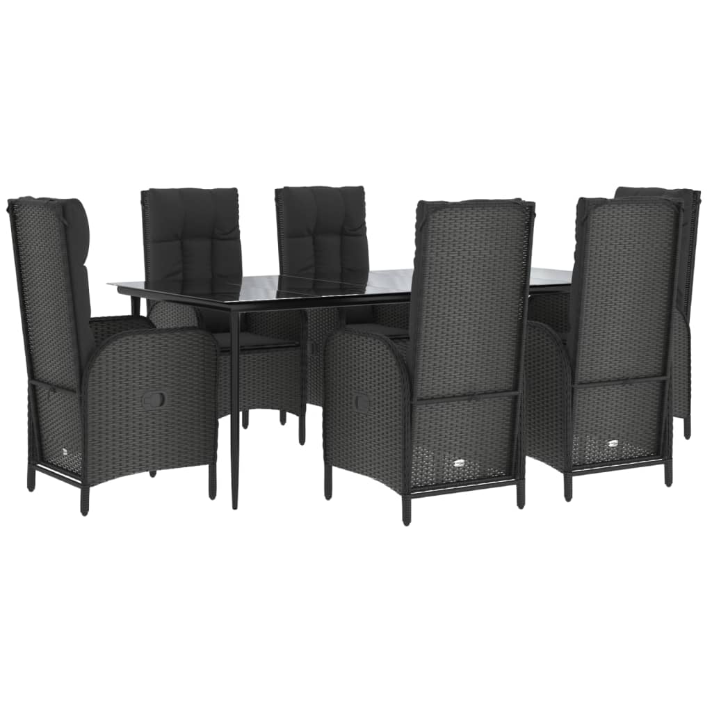 7-tlg. Garten-Essgruppe mit Kissen Schwarz Poly Rattan