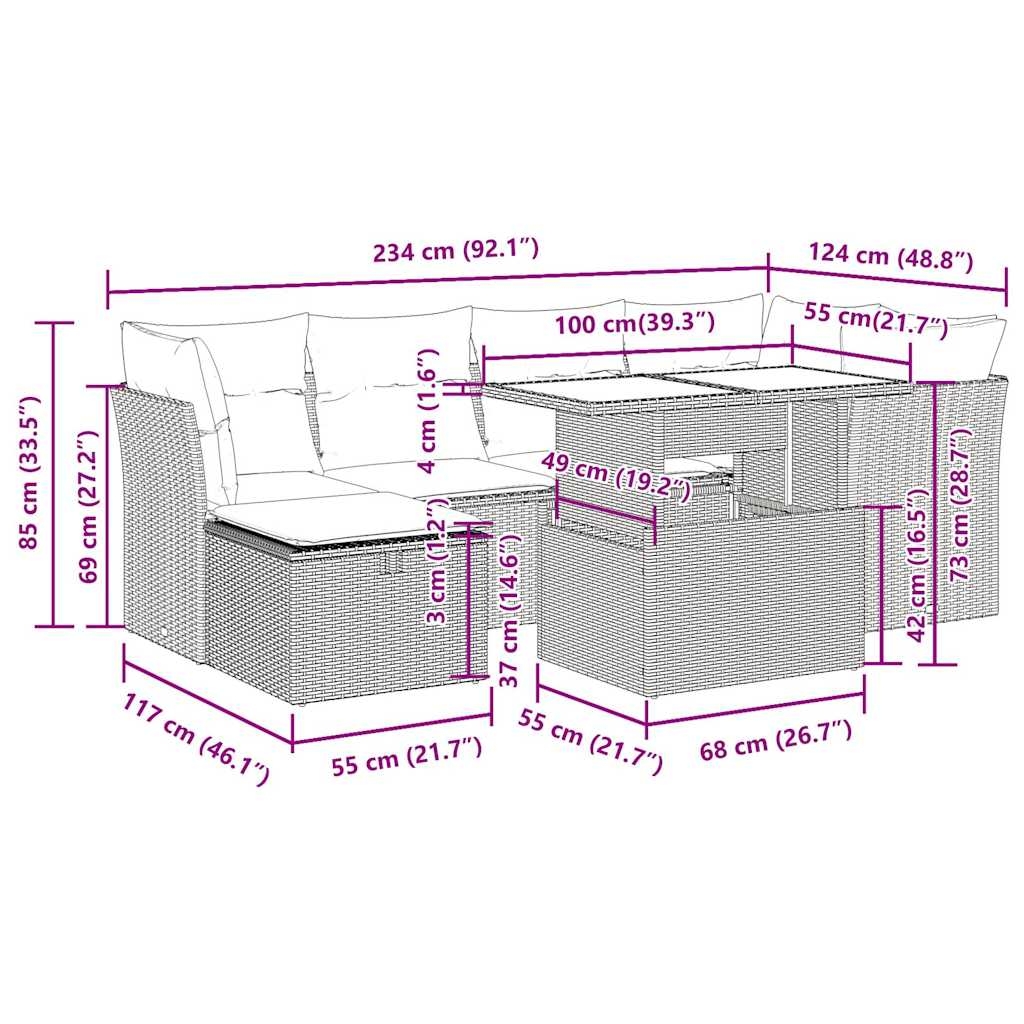 Diese Garten-Sofagarnitur ist die perfekte Ergänzung zu deinem Garten, deiner Terrasse oder deinem Innenhof. Sie bietet einen bequemen und einladenden Platz, um mit Familie und Freunden zu plaudern oder dich einfach nur zu entspannen und das Leben im Freien zu genießen.Langlebiges Material: PE-Rattan, auch als Poly Rattan bekannt, ist ein robustes, pflegeleichtes synthetisches Material, das die Optik von natürlichem Rattan aufweist. Es kennzeichnet sich durch ein geringes Eigengewicht und lässt sich einfach reinigen. Aufgrund seiner Haltbarkeit und Witterungsbeständigkeit wird es häufig bei der Herstellung von Gartenmöbeln verwendet.Stauraum mit wasserfestem Beutel: Jedes Gartensofa verfügt über ein Staufach unter der Sitzfläche, das mit einem wasserfesten Beutel zur Aufbewahrung von Kissen, Spielzeug und anderen Gegenständen versehen ist. Die Kissen sind mit Bezügen versehen und lassen sich mit Klettverschlüssen fest und sicher an den Sofas befestigen.Abnehmbarer und waschbarer Bezug: Diese Sitzkissen verfügen über abnehmbare Bezüge für einfaches Waschen und Pflegen.Modulares Design: Dank des modularen Designs lassen sich die Gartenmöbel völlig flexibel und einfach umstellen, um deinen Außenbereich ganz individuell zu gestalten.Gut zu wissen:Wir empfehlen dir, deine Gartenmöbel mit einer wasserdichten Hülle zu schützen, um lange Zeit eine ansprechende Optik aufzuweisen.