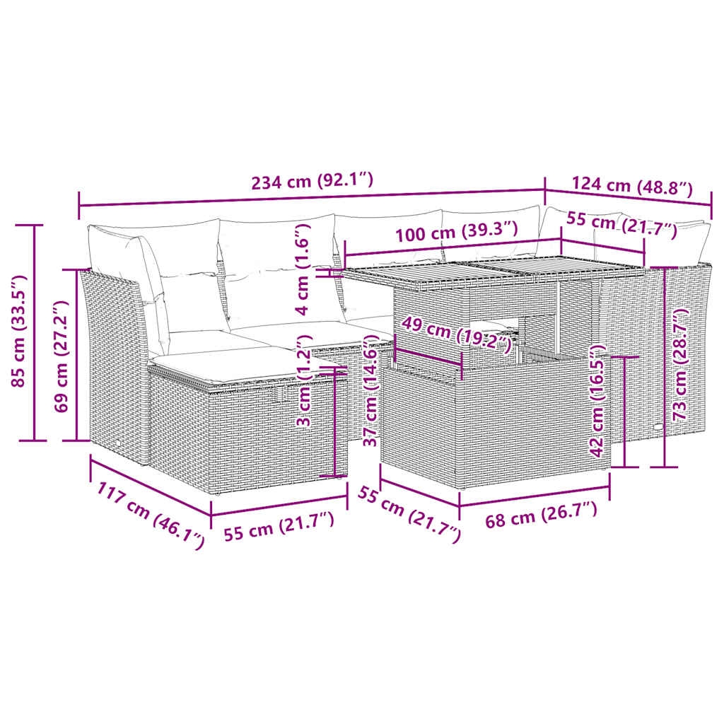 Diese Garten-Sofagarnitur ist die perfekte Ergänzung zu deinem Garten, deiner Terrasse oder deinem Innenhof. Sie bietet einen bequemen und einladenden Platz, um mit Familie und Freunden zu plaudern oder dich einfach nur zu entspannen und das Leben im Freien zu genießen.Langlebiges Material: PE-Rattan, auch als Poly Rattan bekannt, ist ein robustes, pflegeleichtes synthetisches Material, das die Optik von natürlichem Rattan aufweist. Es kennzeichnet sich durch ein geringes Eigengewicht und lässt sich einfach reinigen. Aufgrund seiner Haltbarkeit und Witterungsbeständigkeit wird es häufig bei der Herstellung von Gartenmöbeln verwendet.Stauraum mit wasserfestem Beutel: Jedes Gartensofa verfügt über ein Staufach unter der Sitzfläche, das mit einem wasserfesten Beutel zur Aufbewahrung von Kissen, Spielzeug und anderen Gegenständen versehen ist. Die Kissen sind mit Bezügen versehen und lassen sich mit Klettverschlüssen fest und sicher an den Sofas befestigen.Abnehmbarer und waschbarer Bezug: Diese Sitzkissen verfügen über abnehmbare Bezüge für einfaches Waschen und Pflegen.Modulares Design: Dank des modularen Designs lassen sich die Gartenmöbel völlig flexibel und einfach umstellen, um deinen Außenbereich ganz individuell zu gestalten.Gut zu wissen:Wir empfehlen dir, deine Gartenmöbel mit einer wasserdichten Hülle zu schützen, um lange Zeit eine ansprechende Optik aufzuweisen.