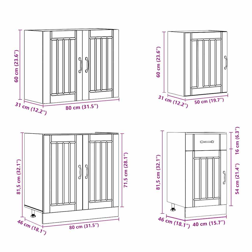 Diese 7-teilige Küchenzeile mit elegantem Design optimiert Ihren Küchenraum und bietet ausreichend Stauraum für Ihre Sachen! Starkes und langlebiges Material: Holzwerkstoff ist ein langlebiges und robustes Material mit einer glatten Oberfläche, das gegen Feuchtigkeit, Verformung und Rissbildung beständig ist, wodurch es eine zuverlässigen Wahl für die Herstellung von Möbeln ist.Viel Stauraum: Das Küchenschrank-Set hat viele Fächer und bietet ausreichend Platz für Schüsseln, Teller, Töpfe und andere Küchengeräte.Verstellbare Füße: Die Unterschränke sind mit verstellbaren Füßen ausgestattet, die sich in der Höhe an deine Kücheneinrichtung anpassen lassen.Pflegeleicht: Dank der glatten Oberfläche lassen sich diese Küchenschränke leicht mit einem feuchten Tuch reinigen und benötigen weniger Pflege. Achtung:Um ein Umkippen zu vermeiden, sollte dieses Produkt mit der mitgelieferten Wandhalterung gesichert werden. Gut zu wissen:Schrauben und Dübel für die Wandbefestigung sind nicht enthalten. Suchen und verwenden Sie die für Ihre Wände geeigneten Schrauben und Dübel. Wenn Sie unsicher sind, suchen Sie professionelle Hilfe. Lesen und befolgen Sie jeden Schritt der Anleitung sorgfältig.Die Arbeitsplatte, das Spülbecken und der Wasserhahn sind nicht im Lieferumfang enthalten.