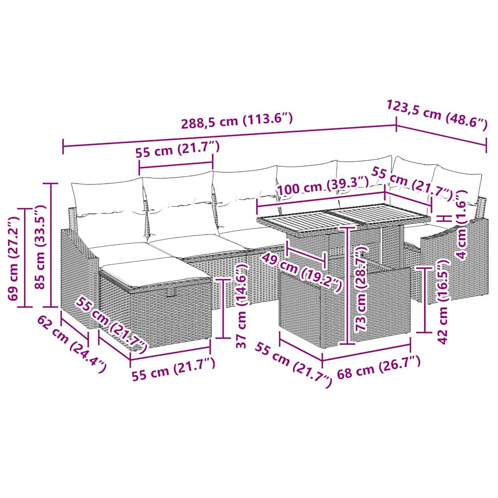 - Lieferumfang: 3 x Mittelsitz mit Stauraum, 1 x Ecksofa mit Stauraum, 2 x Armsofas mit Stauraum, 1 x Fußhocker mit Stauraum, 1 x Gartentisch