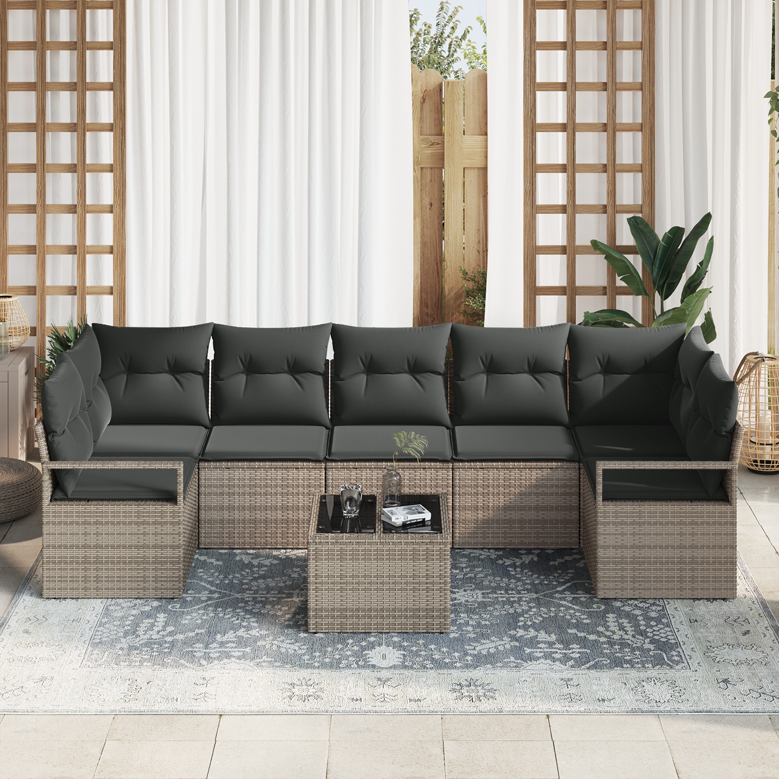 Das 8-teilige Garten Sofa Set vereint Komfort, Stil und praktische Nutzung und ist eine tolle Wahl für entspannte Stunden und geselliges Beisammensein im Freien. Die smarte graue Farbgestaltung und die weichen Kissen sorgen für einen modernen Look, während das handgewebte Rattan Eleganz in deinen Patio, Balkon oder Garten bringt. Handgewebtes Design: Jedes Stück ist mit Sorgfalt aus handgewebtem Rattan gefertigt, was nicht nur hübsch aussieht, sondern auch langlebig ist. Dieses durchdachte Design steigert das Aussehen und sorgt gleichzeitig für Langlebigkeit, was es zu einer smarten Wahl für deine Gartenmöbel macht. Modulare Flexibilität: Die modularen Teile ermöglichen es dir, deine Sitzgelegenheiten nach Belieben zu gestalten, egal ob du Freunde hast oder einfach einen gemütlichen Abend verbringst; es passt sich deinen Bedürfnissen an. Wetterbeständig: Hergestellt aus UV- und wasserresistenten Materialien, ist dieses Sofa Set stark genug, um den Elementen standzuhalten, während es seinen Charme und seine Funktionalität unabhängig von den Wetterverhältnissen behält. Komfortable Sitze: Die Kissen sind mit weichem Schaum gefüllt und bieten einen bequemen Platz zum Entspannen. Egal, ob du in ein Buch eintauchst oder mit Freunden lachst, die bequemen Sitzgelegenheiten fördern wirklich die entspannte Atmosphäre im Freien. Einfache Montage: Das Zusammenbauen dieses Sofa Sets ist super easy, braucht nur ein paar Werkzeuge und einen kleinen Aufwand. Mit klaren Anleitungen hast du dein neues Outdoor Lounge Set ruck-zuck aufgebaut, sodass du dich zurücklehnen und deinen Außenbereich genießen kannst.