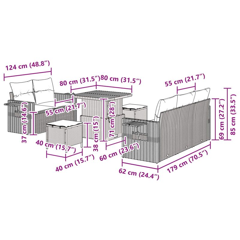 Das 8-teilige Garten Sofa Set ist die perfekte Wahl für entspannte Stunden im Freien und passt super auf Balkonen und Terrassen. Mit seinem modernen Look sehen das schwarze Poly-Rattan und die edle Akazienholz-Oberfläche echt klasse aus. Es verbindet funktionale Sitze mit Stil, optimal für Entspannungsabende mit der Familie oder Freunde. Modulares Design: Mit dem cleveren Setup kannst du die Sitze anpassen, sodass dein Außenbereich ideal aussieht und dir für jeden Anlass Flexibilität gibt. Wetterfest: Hergestellt aus hochwertigen Materialien, bleibt dieses Sofa-Set auch bei schlechtem Wetter in Topform und sieht immer gut aus. Bequeme Kissen: Jedes Stück hat weiche, wetterfeste Kissen mit Reißverschluss für eine einfache Reinigung, die dein Draußen-Entspannen echt gemütlich macht. Einfache Montage: Der Aufbau ist super easy, da es alle nötigen Werkzeuge und klare Anleitungen gibt, damit du deinen Außenbereich stressfrei genießen kannst. Stylisches Aussehen: Mit seinem modernen Design und den natürlichen Rattan-Materialien bringt dieses Set Charme in jedes Outdoor-Dekor, indem es Stil und Komfort verbindet für eine einladende Atmosphäre.