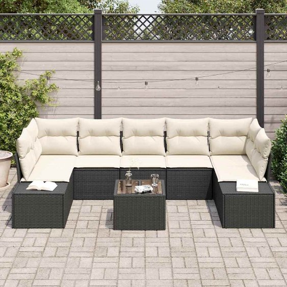 Dieses 8-teilige Garten-Sofa-Set mit Kissen steht ganz im Zeichen des entspannten Chillens im Freien. Stell dir vor, wie du mit Freunden tolle Abende in deinem Garten verbrauchst, während die gemütlichen Kissen und das clevere Design einen einladenden Platz schaffen. Vielseitige Sitzmöglichkeiten: Dieses Garten-Sofa-Set hat Platz für bis zu 8 Leute. Ideal für Treffen oder entspannte Nachmittage draußen. Das modulare Design kannst du nach Laune anordnen, passend für deinen Raum und deine Bedürfnisse. Stylisches Aussehen: Die coole Schwarz-Weiß-Farbgebung bringt jeden Außenbereich zum Strahlen und bietet eine klasse Kulisse für gesellige Stunden. Komfort: Mit dicken, weichen, abnehmbaren Kissen bietet das Set einen tollen Komfort für lange Entspannung. Robuste Materialien: Aus UV-beständigem Poly-Rattan gefertigt, hält dieses Garten-Set jedem Wetter stand und bleibt stylish. Der stabile Stahlrahmen sorgt für Langlebigkeit, damit du deinen Außenbereich ohne Sorgen genießen kannst. Durchdachte Dimensionen: Die großzügigen Sitzmöglichkeiten und durchdachten Maße bieten viel Platz und schaffen eine entspannte Stimmung.