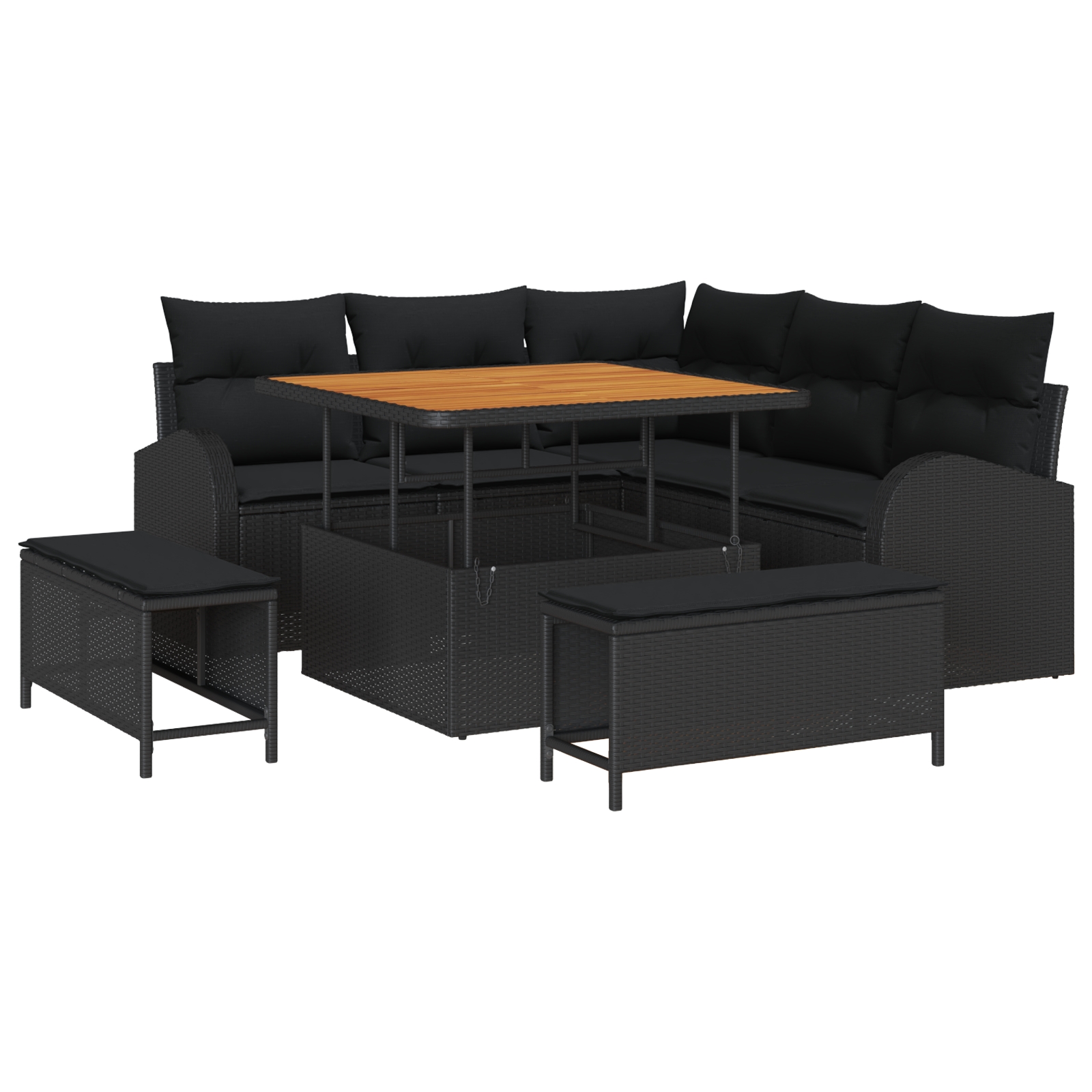 Dieses Garten Sofa Set ist ideal für entspanntes Sitzen im Freien und hat Platz für bis zu fünf Personen. Die Kombination aus Poly-Rattan und Stahl macht es stylisch und praktisch, perfekt für Balkone oder Gärten, wo du die frische Luft bequem genießen kannst. Verstellbare Merkmale: Die verstellbaren Füße ermöglichen dir eine Anpassung der Höhe für ein bequemes Lounge-Erlebnis. Modulares Design: Layout leicht anpassen, perfekt zum Unterhalten oder Relaxen. Wetterbeständig: Aus synthetischen Materialien hergestellt, hält dieses Set den Elementen stand und bleibt stylish und langlebig. Bequeme Kissen: Mit kuscheligen Kissen ist dieses Sofa Set einladend für Zusammenkünfte oder um sich mit einem Buch zu entspannen. Stylische Ästhetik: Das moderne Design mit seiner schönen gewebten Textur bringt einen Hauch von Klasse in jeden Außenbereich und fügt sich harmonisch in die Natur ein.