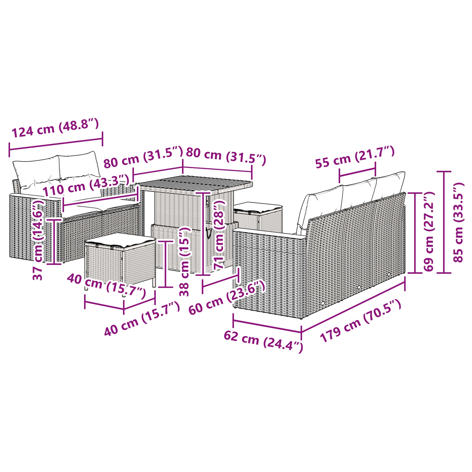 Das 8-teilige Garten Sofa Set sorgt dafür, dass Entspannen im Freien stylisch wird. Es hat ein cooles Design, das perfekt für Terrassen, Balkone oder Gärten geeignet ist. Hergestellt aus strapazierfähigem Poly Rattan mit bequemen Kissen, bietet dieses Set eine gemütliche Atmosphäre für gesellige Abende oder entspannte Nachmittage im Freien. Handgewebtes Design: Jedes Stück ist handgewebt, was höchste Handwerkskunst und Liebe zum Detail zeigt und deine Outdoor-Deko aufwertet. Modulare Vielseitigkeit: Durch das Umstellen der Teile kannst du alles nach deinem Stil und deinen Platzbedürfnissen anpassen. Outdoor Material: Hergestellt aus hochwertigem synthetischem Poly Rattan, das Sonnenlicht, Regen und Abnutzung standhält und dafür sorgt, dass es schön und nützlich bleibt. Bequeme Kissen: Weiche, abnehmbare Kissen, die für draußen gemacht sind und tollen Komfort bieten, ob du Freunde empfängst oder einfach nur in der Sonne relaxen willst. Kompakte Sitzkapazität: Perfekt für Zusammenkünfte, dieses Set bietet Platz für bis zu vier Personen und schafft eine gemütliche Atmosphäre für unvergessliche Momente draußen.