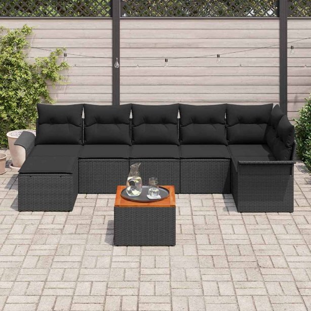 Dieses Outdoor-Sofaset hebt dein Entspannungsspiel auf ein neues Level, während es in deinen Außenbereichen fantastisch aussieht. Mit einem schlanken Design, dem coolen schwarzen Poly-Rattan und gemütlichen Kissen bringt es eine einladende Atmosphäre – perfekt für Familientreffen oder entspannte Nachmittage in der Sonne. Das zeitgemäße Design sieht stylisch aus und ergänzt jeden Außenbereich, wodurch dein Balkon oder deine Terrasse lebendig wirkt. Bequeme Kissen machen es dir leicht zu entspannen – perfekt zum Abschalten in deiner ruhigen Umgebung. Robuste Materialien sorgen dafür, dass diese Möbel dem Wetter standhalten, sodass du dir keine Sorgen machen musst, wenn das Wetter schlecht wird. Der Tisch ist super praktisch für Drinks und Snacks und verbessert dein Outdoor-Erlebnis beim Unterhalten. Dieses Set bietet Platz für bis zu acht Personen – ideal für gesellige Veranstaltungen oder Familientreffen.