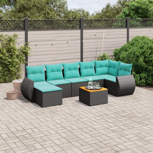 Dieses Gartensofa-Set ist die perfekte Ergänzung für Ihren Garten, Ihre Terrasse oder Ihren Innenhof und bietet einen komfortablen und einladenden Platz zum Plaudern mit Familie und Freunden oder einfach zum Entspannen und Genießen der Natur. Langlebiges Material: PE-Rattan, auch bekannt als Polyrattan, ist ein robustes, pflegeleichtes Kunststoffmaterial, das wie natürliches Rattan aussieht. Es ist leicht, einfach zu reinigen und wird aufgrund seiner Langlebigkeit und Wetterbeständigkeit häufig für Gartenmöbel verwendet.Stabile und leicht zu reinigende Tischplatte: Dieser Gartentisch hat eine Tischplatte aus Akazienholz, die robust, langlebig und mit einem feuchten Tuch leicht zu reinigen ist. Bequemes Sitzerlebnis: Diese Gartenmöbel mit dick gepolsterten Kissen bieten ein bequemes Sitzerlebnis.Abnehmbarer und waschbarer Bezug: Diese Sitzkissen verfügen über abnehmbare Bezüge zum einfachen Waschen und Pflegen.Modulares Design: Dieses Gartenmöbelset ist modular aufgebaut und daher völlig flexibel und leicht zu bewegen, sodass Sie eine individuelle Gartenmöbelanordnung erstellen können. Gut zu wissen:Damit Ihre Gartenmöbel schön bleiben, empfehlen wir Ihnen, sie mit einer wasserdichten Abdeckung zu schützen.