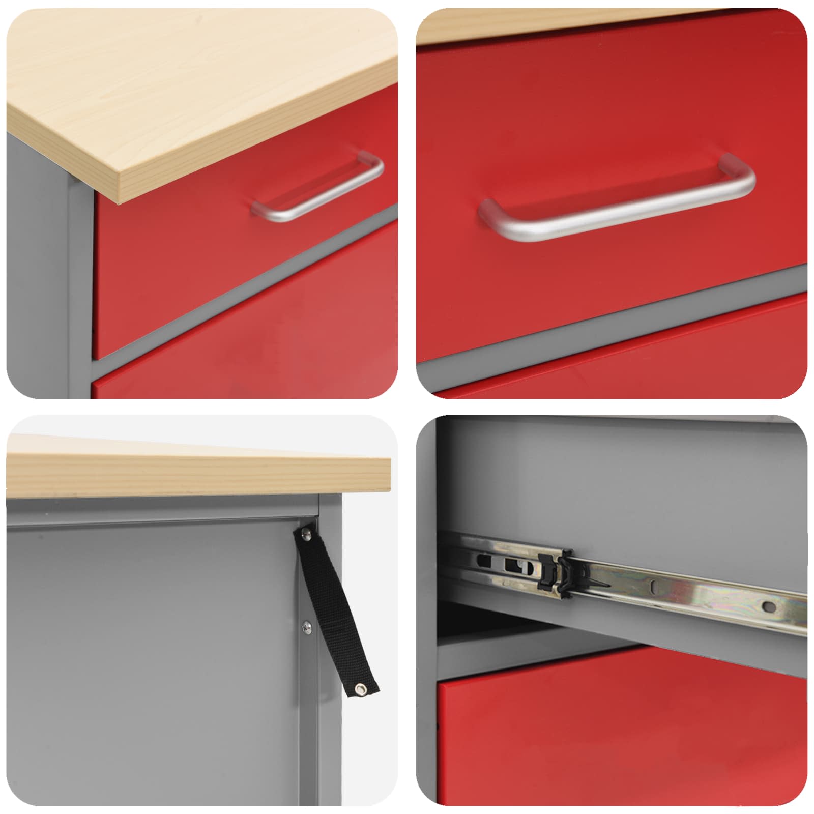 - Lieferumfang: 2 x Werkstatt Schrank (1 Tür und 1 Schublade), 1 x Werkstatt Schrank (1 Schublade), 3 x Werkzeugwandpaneele, 1 x Werkzeugschrank (1 Tür), 1 x Werkzeugschrank (2 Türen)