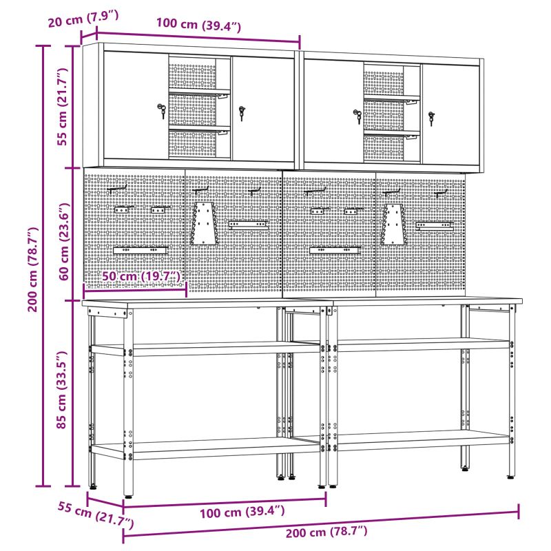 - Lieferumfang: 2 x Tisch, 4 x Pegboard, 2 x Schrank mit Pegboard