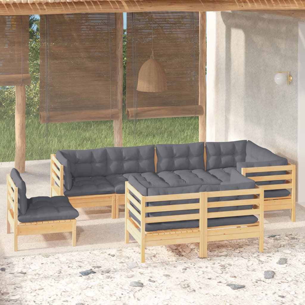 8-tlg. Garten-Lounge-Set mit Grauen Kissen Kiefer Massivholz